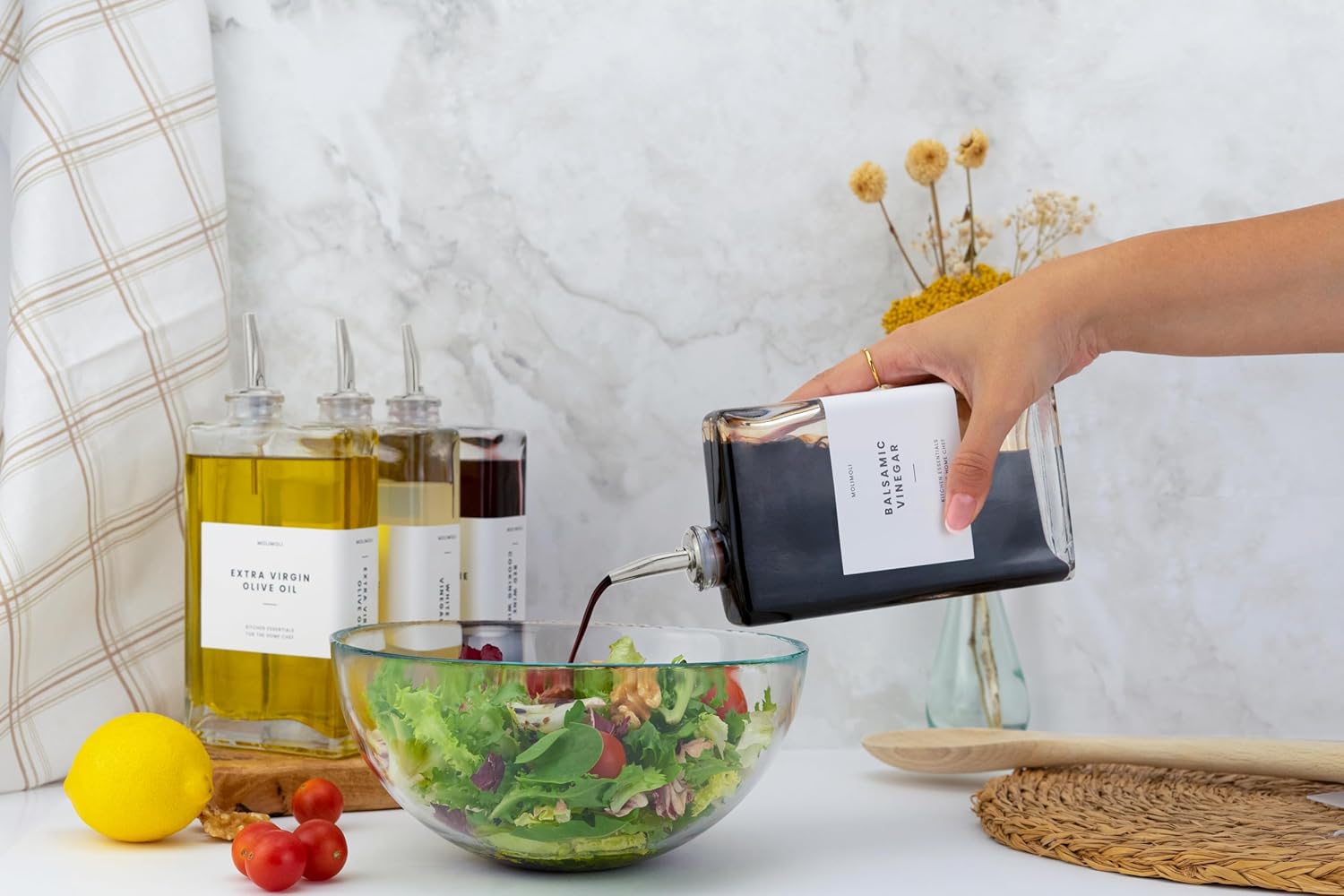- FAST AND CONSISTENT FLOW: Our bottle spout has been engineered to deliver a fast, consistent flow of oil or liquor. The weighted pourer is specifically designed for one-handed control and pouring accuracy, making it ideal for salads, grilled chicken breast, pizza toppings or mixing cocktails.