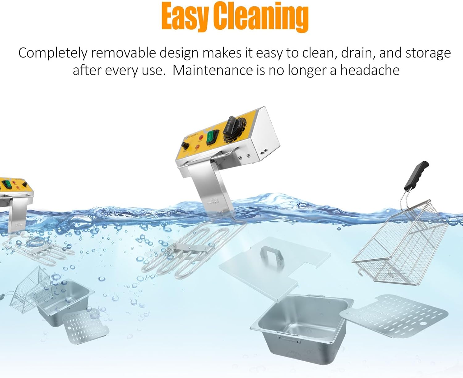 - Durable and Easy Maintenance - Thicken 304 food-grade stainless steel construction of countertop fryer resists corrosion and rust in grease environment. Completely removable design makes it easy to clean, drain, and storage after use