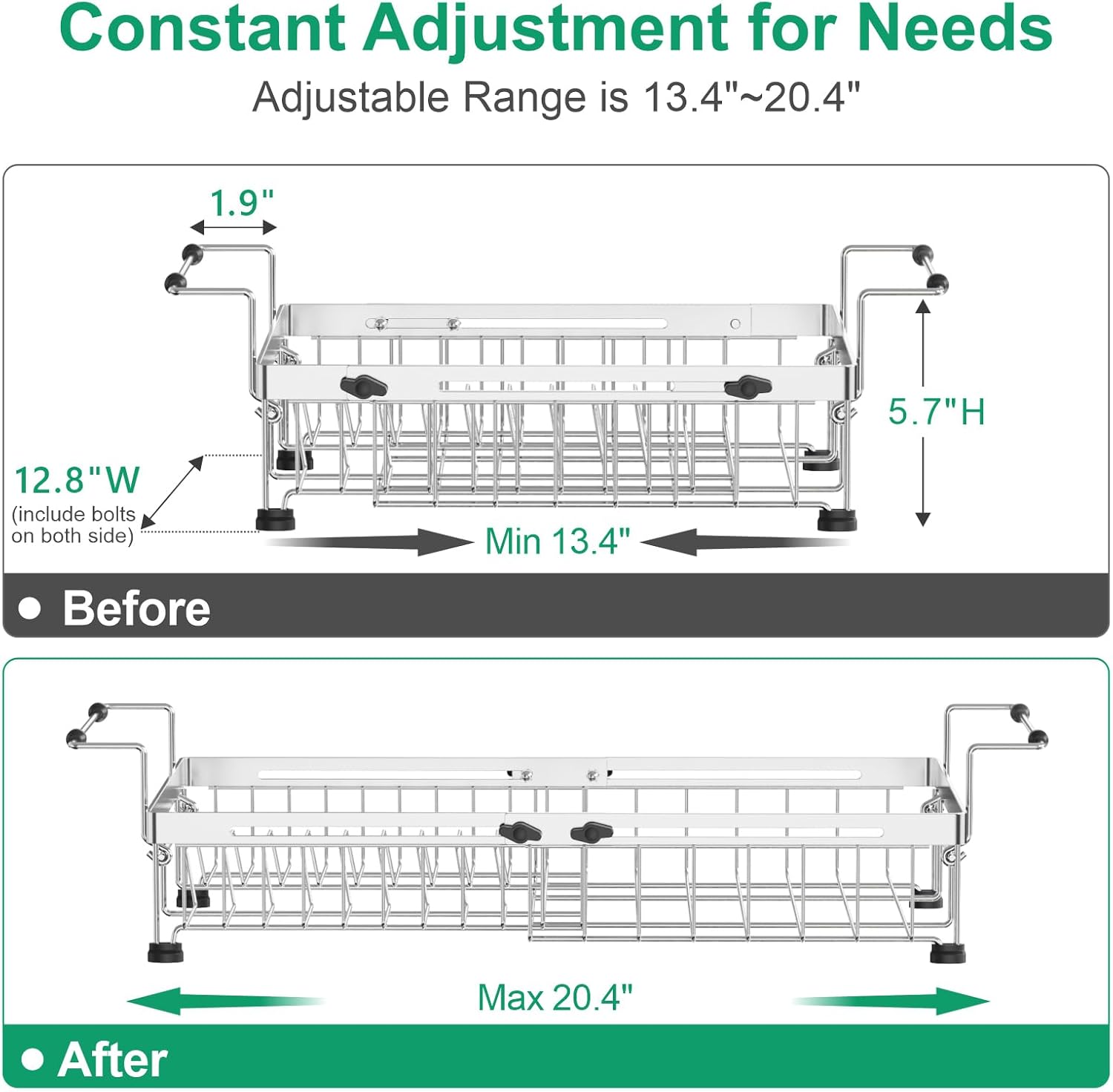 GSlife Expandable in Sink Dish Drying Rack - Stainless Steel Capacity Adjustable Over The Sink Dish Rack, Dish Drainer for Kitchen Sink Counter with Utensil Holder, 13.4"-20.5" L x 12.8" W, Silver