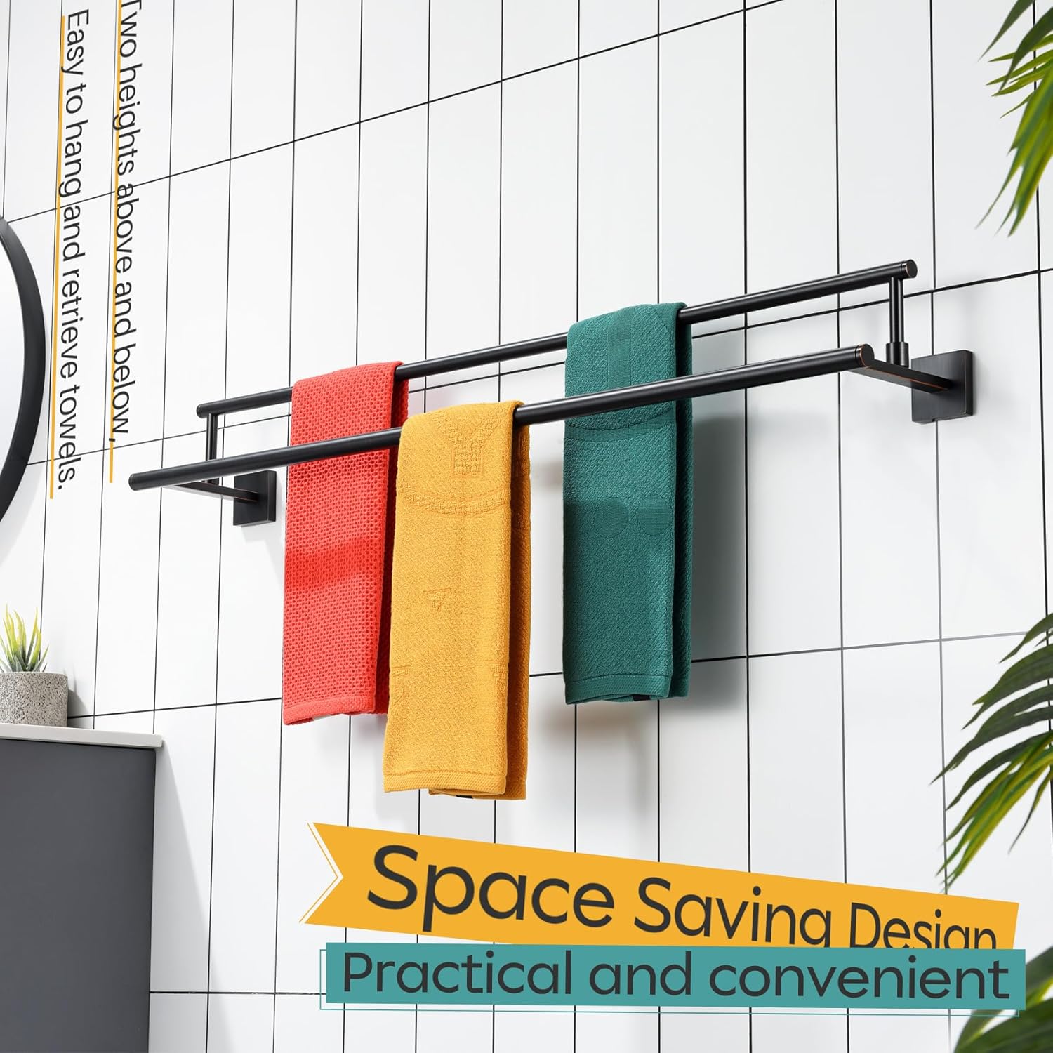 - ◄ PREMIUM MATERIAL ► KOKOSIRI Double Towel Bars made of SUS304 Stainless Steel and features an all-metal design using high-grade steel to resist rust and corrosion from daily use. For your health, all the materials we use are the highest quality and harmless. You can rest assured to use all of our products