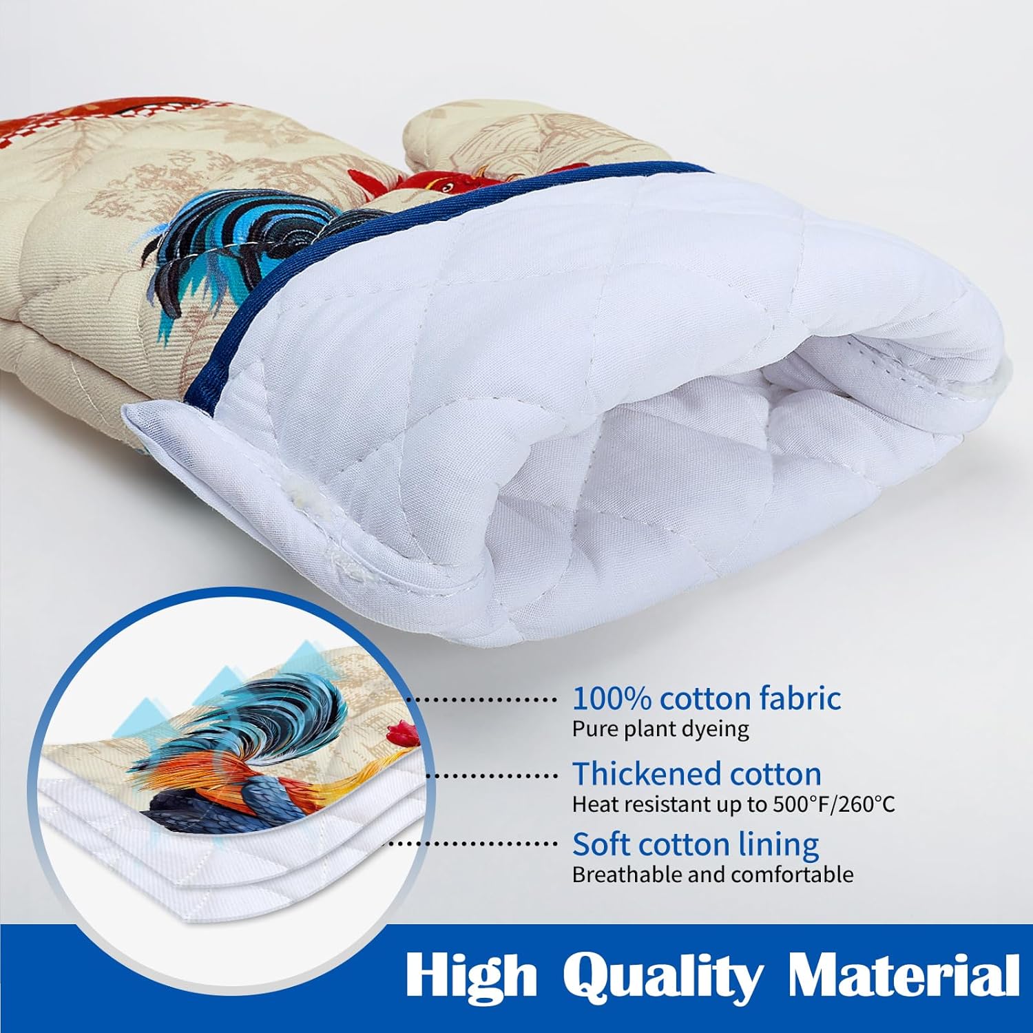Rooster Oven Mitts and Pot Holders Sets 4Pcs, 100% Cotton Heat Resistant, Extra Long Oven Gloves Potholder for Kitchen Cooking Baking Housewarming