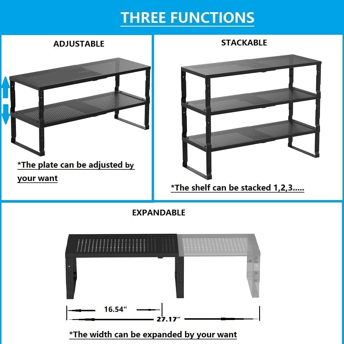 - ⭐【Flexible retractable design (Expandable & Adjustable)】This kitchen shelf uses a retractable design, which can be freely adjusted according to the size of the kitchen space and personal needs. Whether it is a narrow corner or a spacious storage room, it can be easily adapted to make the most of every inch of space.(10.1"D x 16.54"W~26.38"W x 6.22"H)
