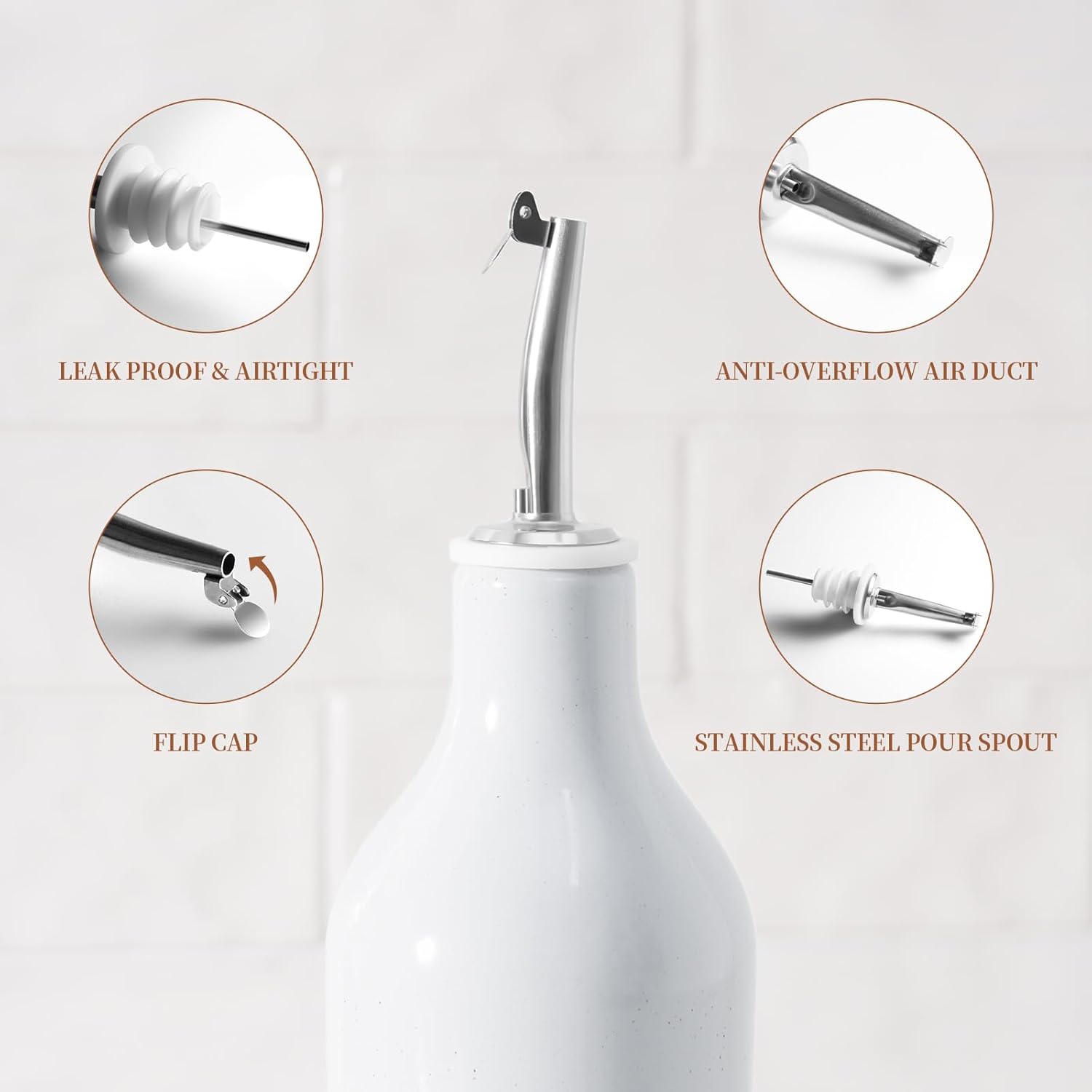 - FUN SPOTTED DESIGN - These oil bottles for kitchen feature a simple design with a brown speckled pattern, each piece is unique, making mealtimes more enjoyable. It fits in with all kitchen decor styles and adds a splash of color to your kitchen