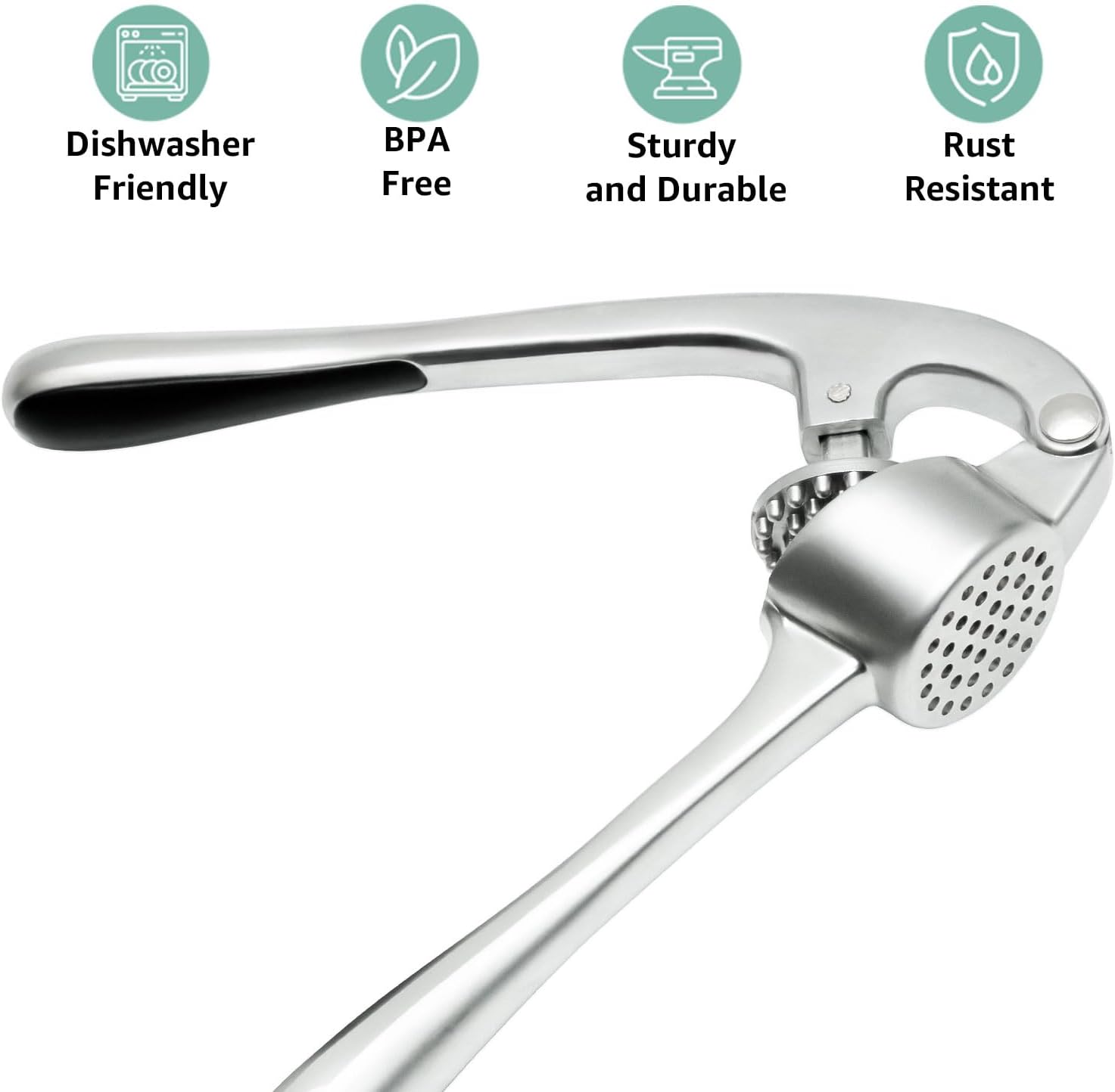 - ✅ Classic Silver Stainless Steel Build – Made from high-quality stainless steel, this garlic crusher press stainless steel tool is durable, rust-resistant, and built to last.
