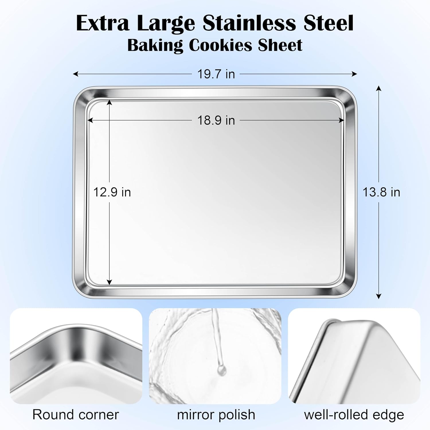 E-far Large Baking Sheet, 20”x14” Stainless Steel Cookie Sheet Pan for Oven, Non Toxic Metal Baking Tray for Cake Cookies, Healthy & Rust Free, Mirror Finish & Dishwasher Safe, 1 Pack