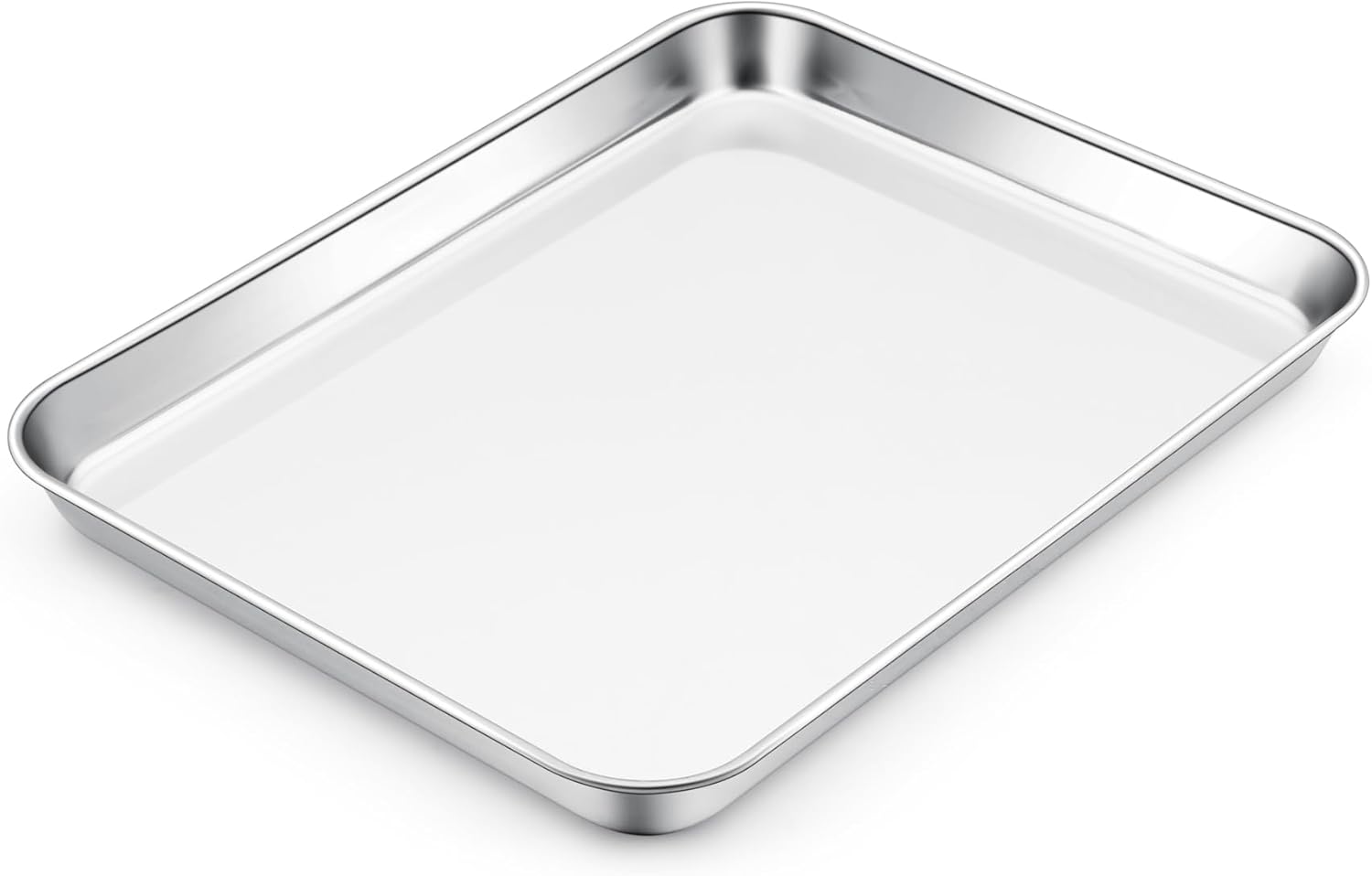 E-far Toaster Oven Tray, 10.5”x8.3” Stainless Steel Small Baking Cookie Sheet, Compact Non-toxic Metal Baking Pan for Cake, Healthy & Rust Free, Mirror Finish & Dishwasher Safe, 1 Pack