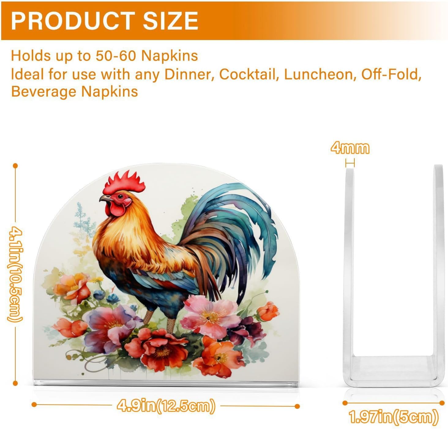 Rooster and Flower Napkin Holder for Table Paper Napkins Holder Acrylic Tissue Dispenser Kitchen Dining Room Bathroom Party Car Decor