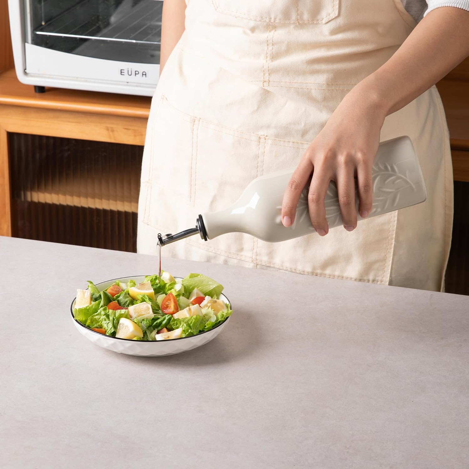 - Durable and Precise Pouring Control - The olive oil bottle fired at high temperatures, to form a smooth glazed surface, strength and durability. The carefully designed spout that allows for easy pouring without any messy drips or spills.
