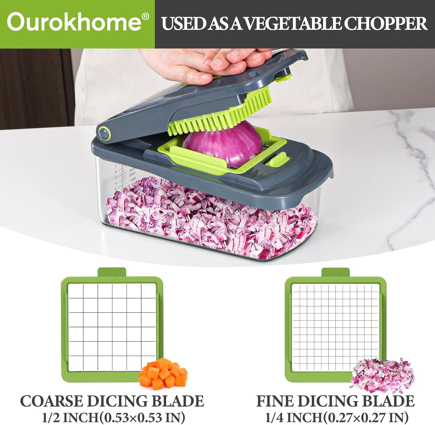- A kitchen essential gadgets - Whether you're a novice cook or a seasoned pro, the Ourokhome 6 in 1 vegetable chopper and spiralizer is a must-have in any kitchen. It's versatile, easy and safe to use and store