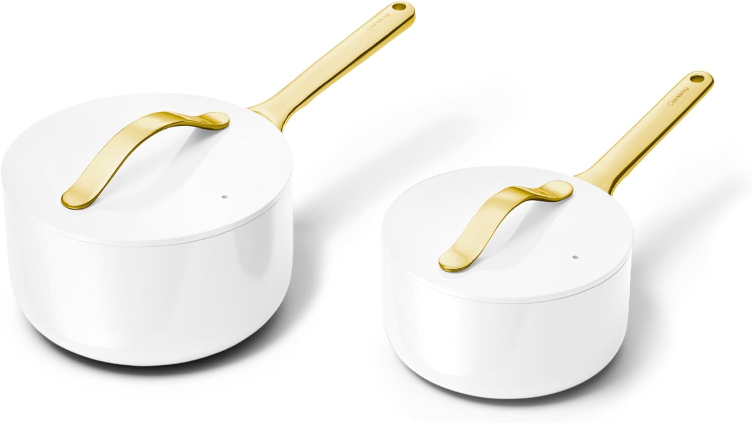 Caraway Nonstick Ceramic Sauce Pans with Lids (3 qt & 1.75 qt) - Non Toxic, PTFE & PFOA Free - Oven Safe & Compatible with All Stovetops (Gas, Electric & Induction) - White
