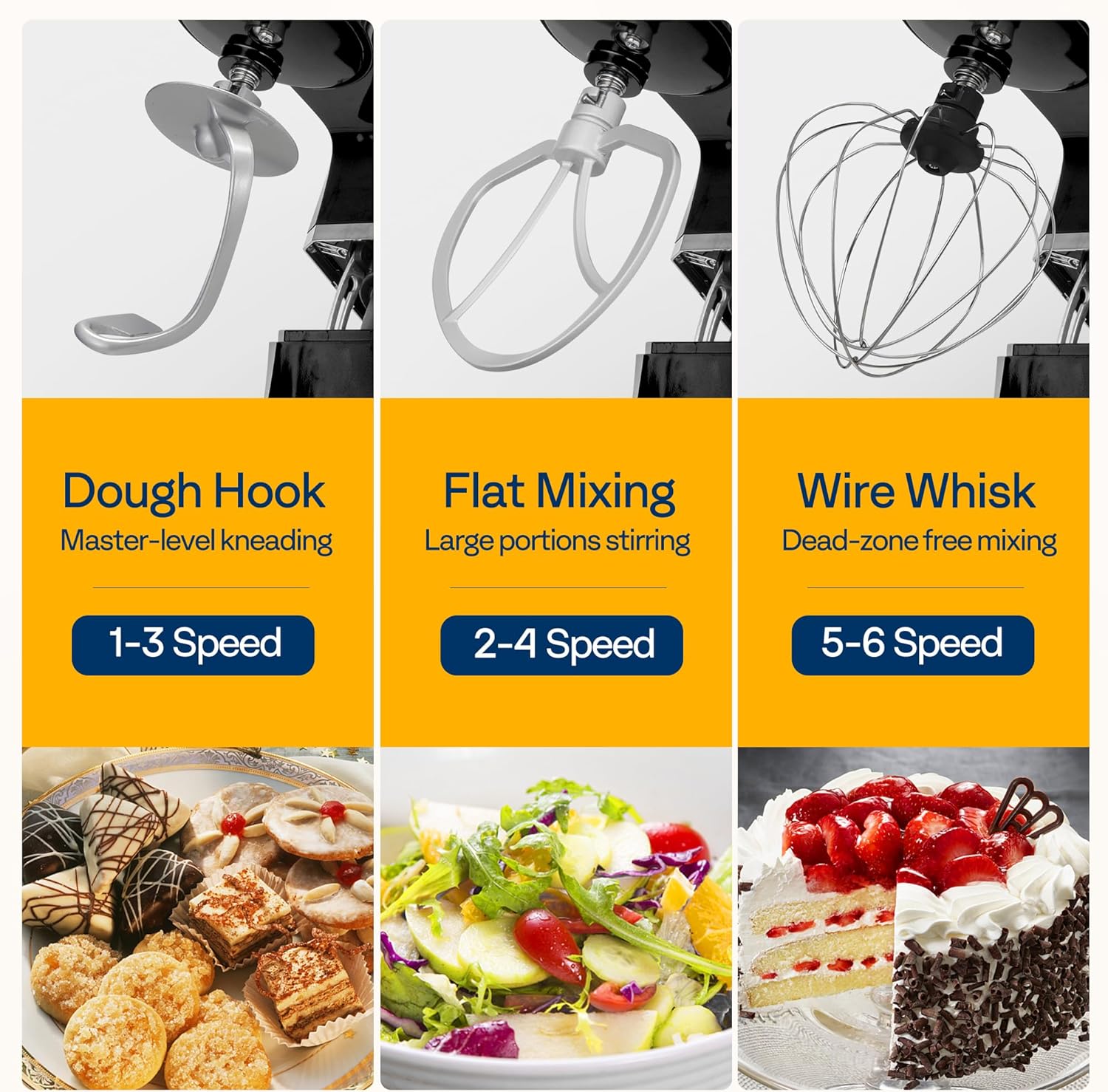 - LARGE SPACE SAVING BOWL: The 6QT mixing bowl with a handle is perfect for baking large batches of cakes, bread, and cookies; The tilt-head design ensures mess-free ingredient additions, while the simple setup and dismantling make it a versatile choice for any kitchen with limited space