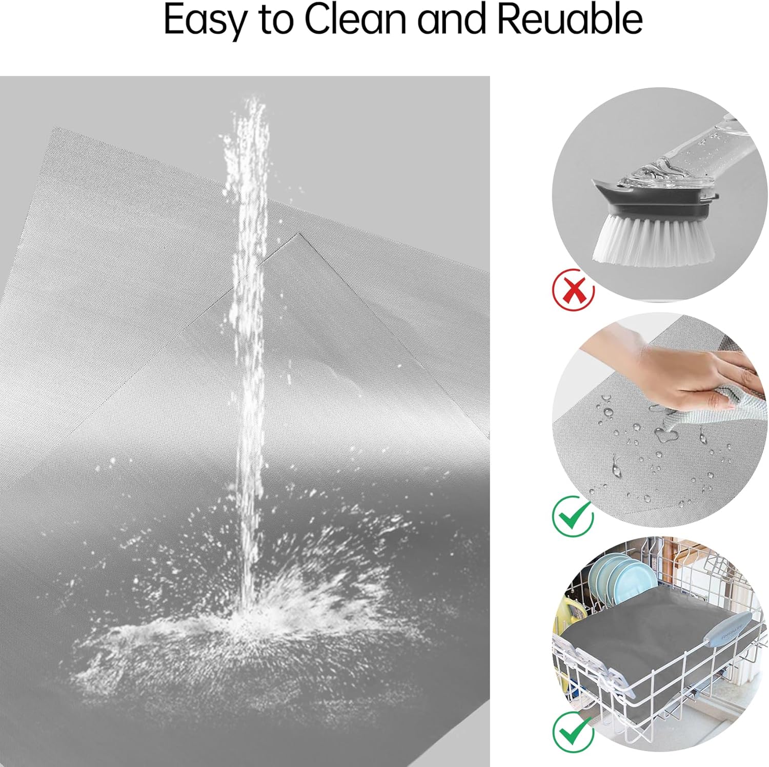 - Keep your oven spotlessly clean with our non-stick oven liners! They catch drips, cheese, sauces, and other baked messes, making cleaning a breeze. Plus, you can wash them in the dishwasher for easy maintenance