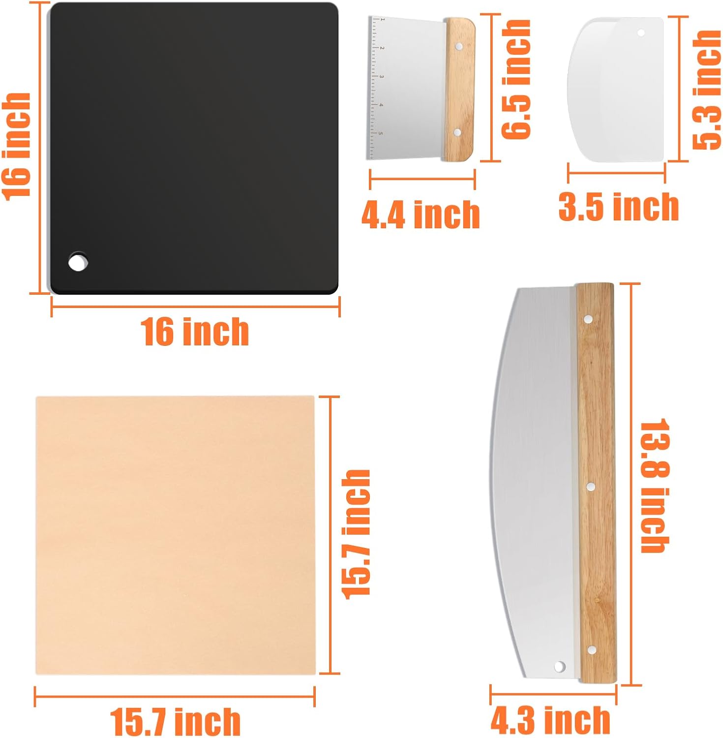 - 【Bench Multipurpose Food Scrappers】- Made of food-grade PP plastic, the batter-reducing dough is scraped out of each bowl without leaving any residue, and can also be used to clean the baking steel, which is dishwasher safe. 【20 Parchment Papers】- Neatly cut food-grade baking paper for baking, grilling, frying, and steaming, with a 450°F heat resistance so pizza won't stick to it