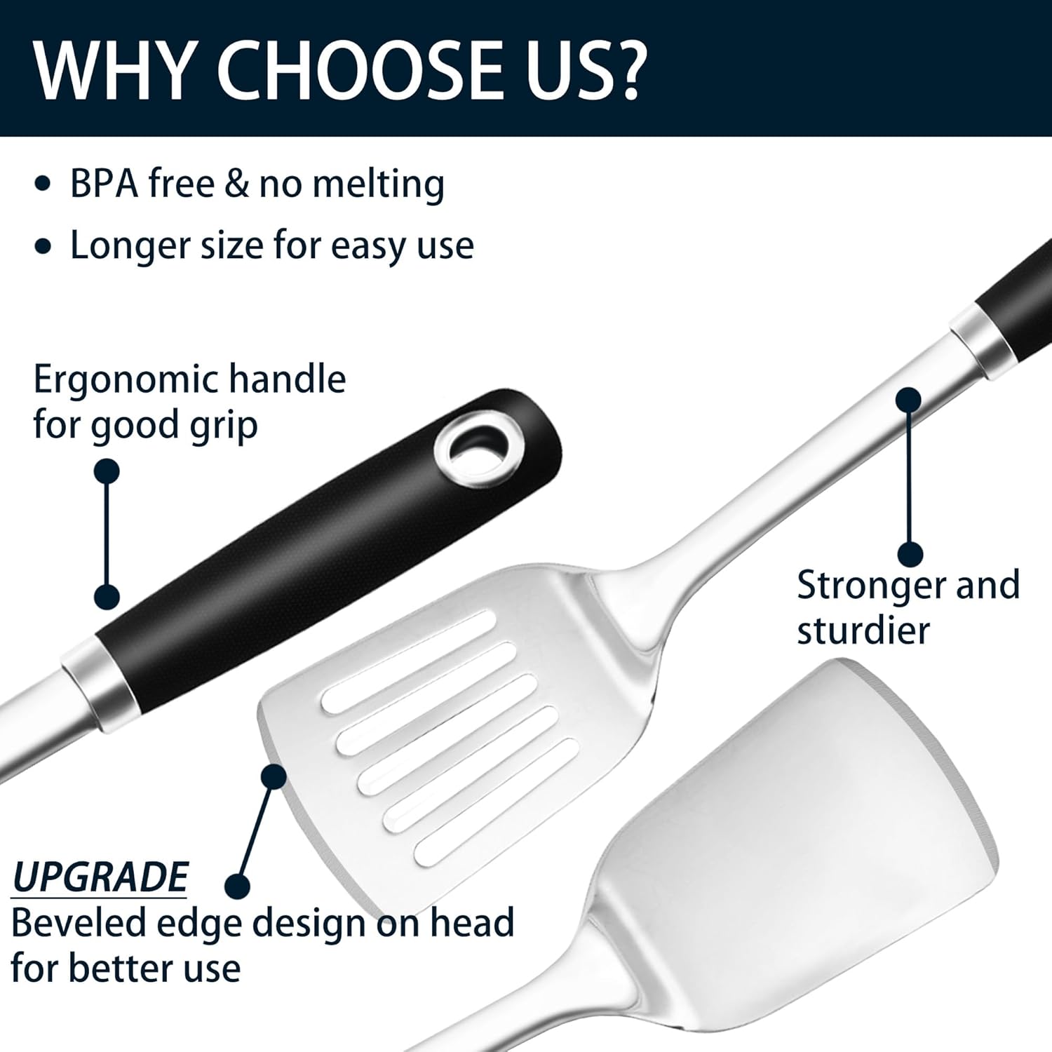 14.3-in Spatula Set, 18/0 Stianless Steel Heavy Duty Turner & Slotted Spatula, Kitchen Cooking Utensils Set, High Heat Resistant, Grilling Frying Serving Food, Pack of 2