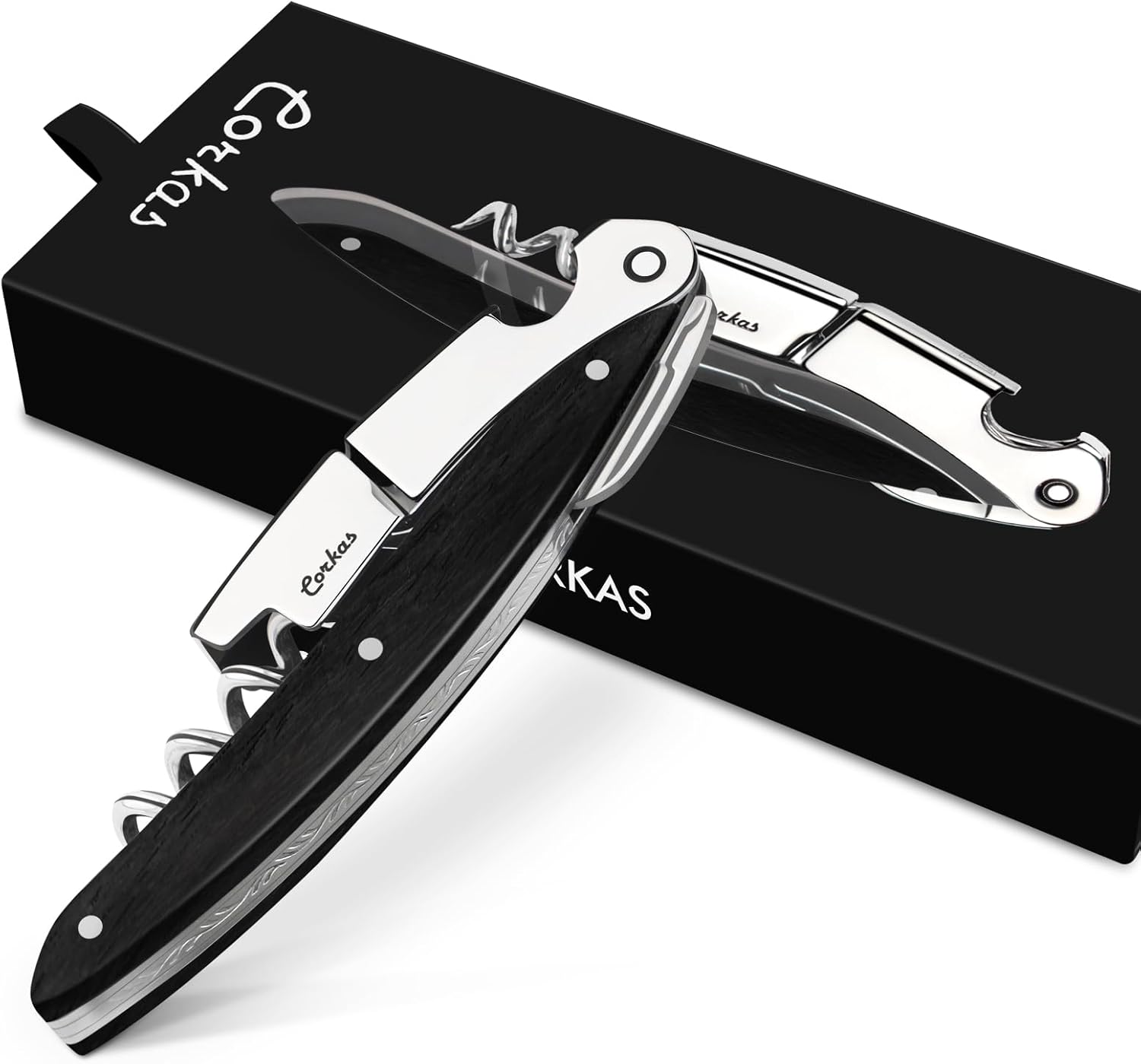 - ✅【EFFORTLESS UNCORKING, EVERY SINGLE TIME】Ditch the struggle with the CORKAS Waiter's Corkscrew! Featuring a double-hinged fulcrum and grooved worm, this corkscrew glides through any cork for smooth, frustration-free uncorking. No more crumbled corks or wasted time wrestling with stubborn stoppers - just perfectly extracted wine, ready to savor with ease. Ideal for busy servers in restaurants or a frustration-free wine experience at home.