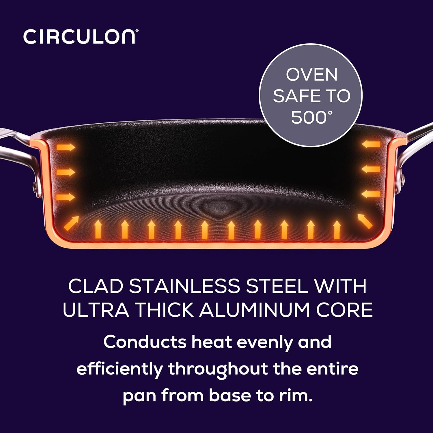 Circulon C1 Series Clad Stainless Steel with ScratchDefense Technology Cookware Nonstick Induction Frying Pans/Skillets with Lids, Metal Utensil Safe, 6 Piece Set - Polished Stainless Steel