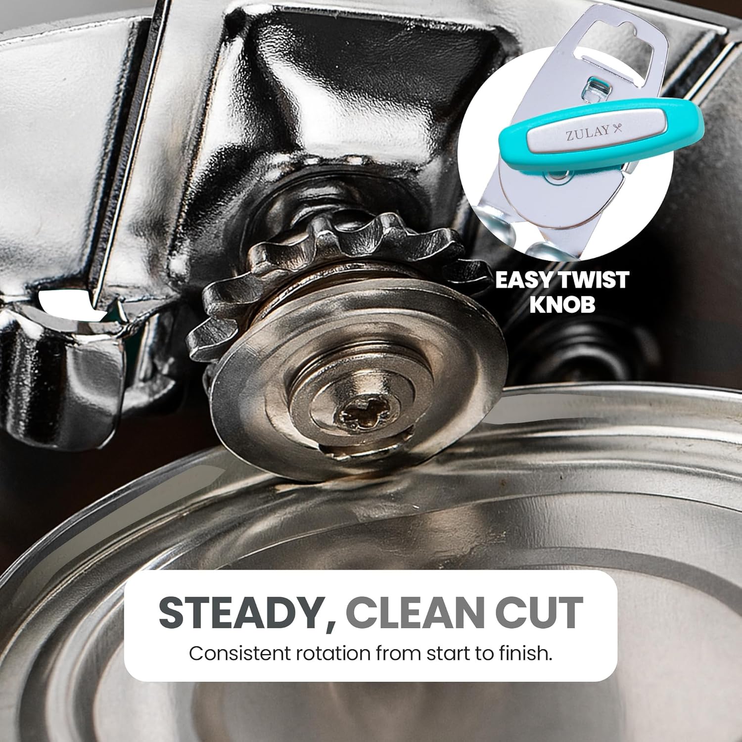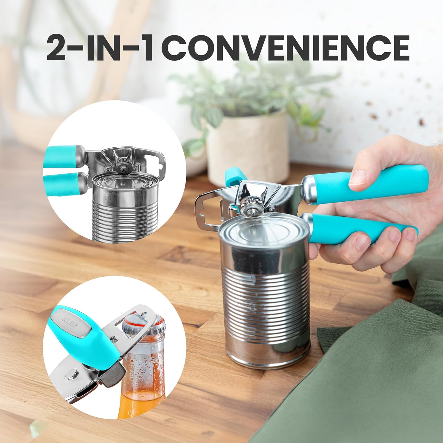 Zulay Kitchen Heavy Duty Stainless Steel Can Opener Manual with Bottle Opener - Rust Proof Manual Can Opener With Turn Knob & Soft Grip Handles