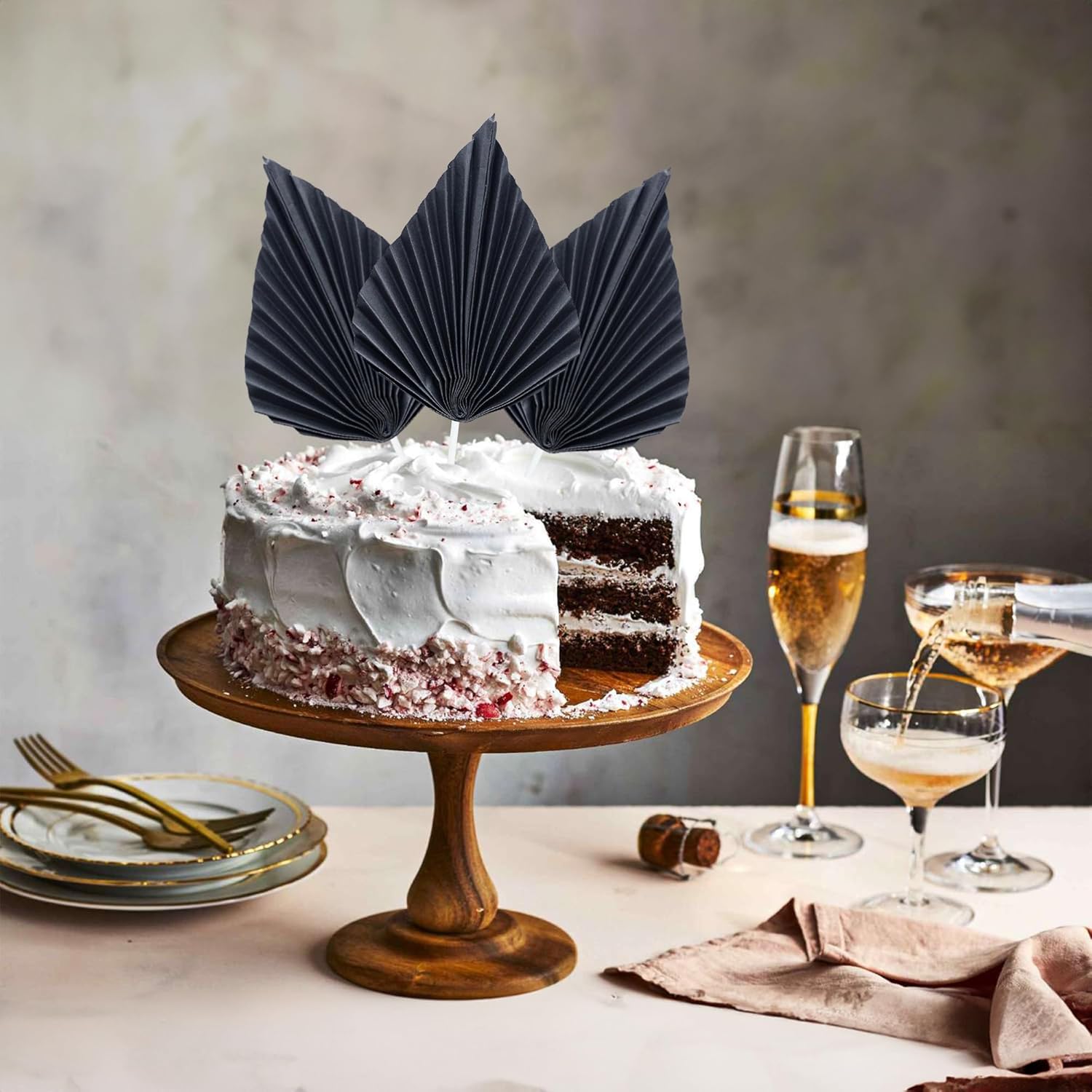 - -Package included: 6Pcs Paper Palm Fan Cake Toppers. Comes with unassembled, so you can insert into your cake with stick, which make your cake more interesting.