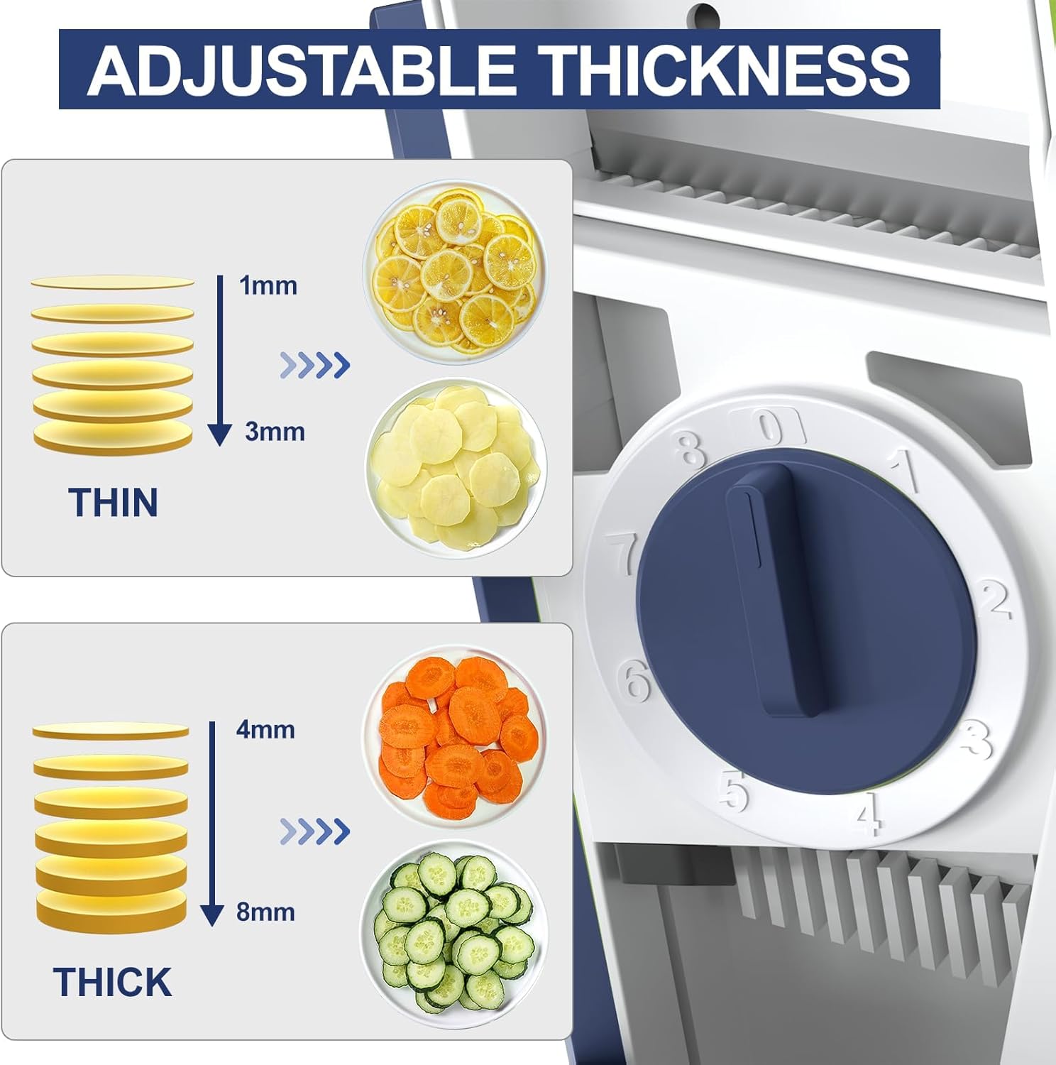 Safe Mandoline Slicer and Vegetable Chopper, Multi Potato Slicer for Kitchen, 4 Modes 100+ Presets Thickness Adjustable,(Blue)