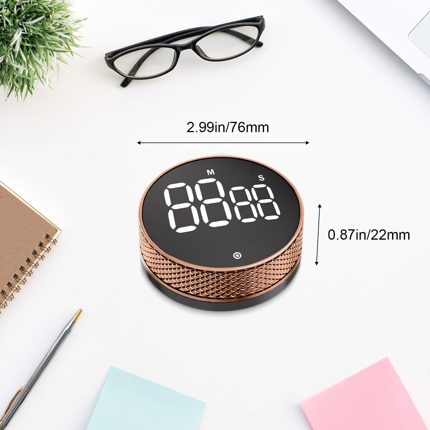 BlueSnail Kitchen Timer with LED Digital Display Smart Efficana for Home Classroom Gym Office, Volume and Brightness Adjustable Productivity Timer (Rose Gold)
