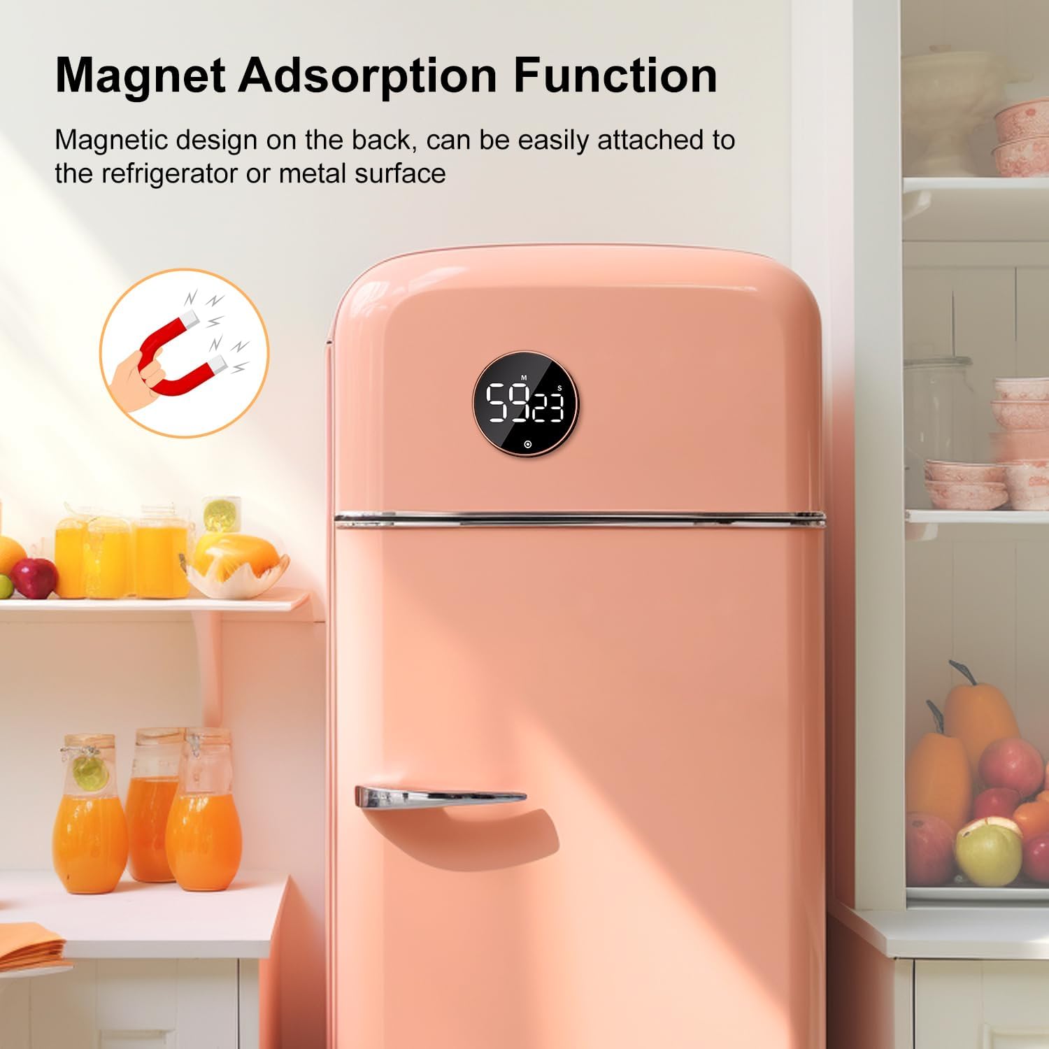 - Countdown and Countup timer: According to your different needs to setting timer as the countdown or countup timer, the range of digital from 00:00 to 99:55, the time increases or decreases at the minimum 5 seconds when you adjust the digital. The back of the timer with strong magnets, which can be adsorbed metal materials of the gym, firmly and no-slipping, you can one-hand operation operation.