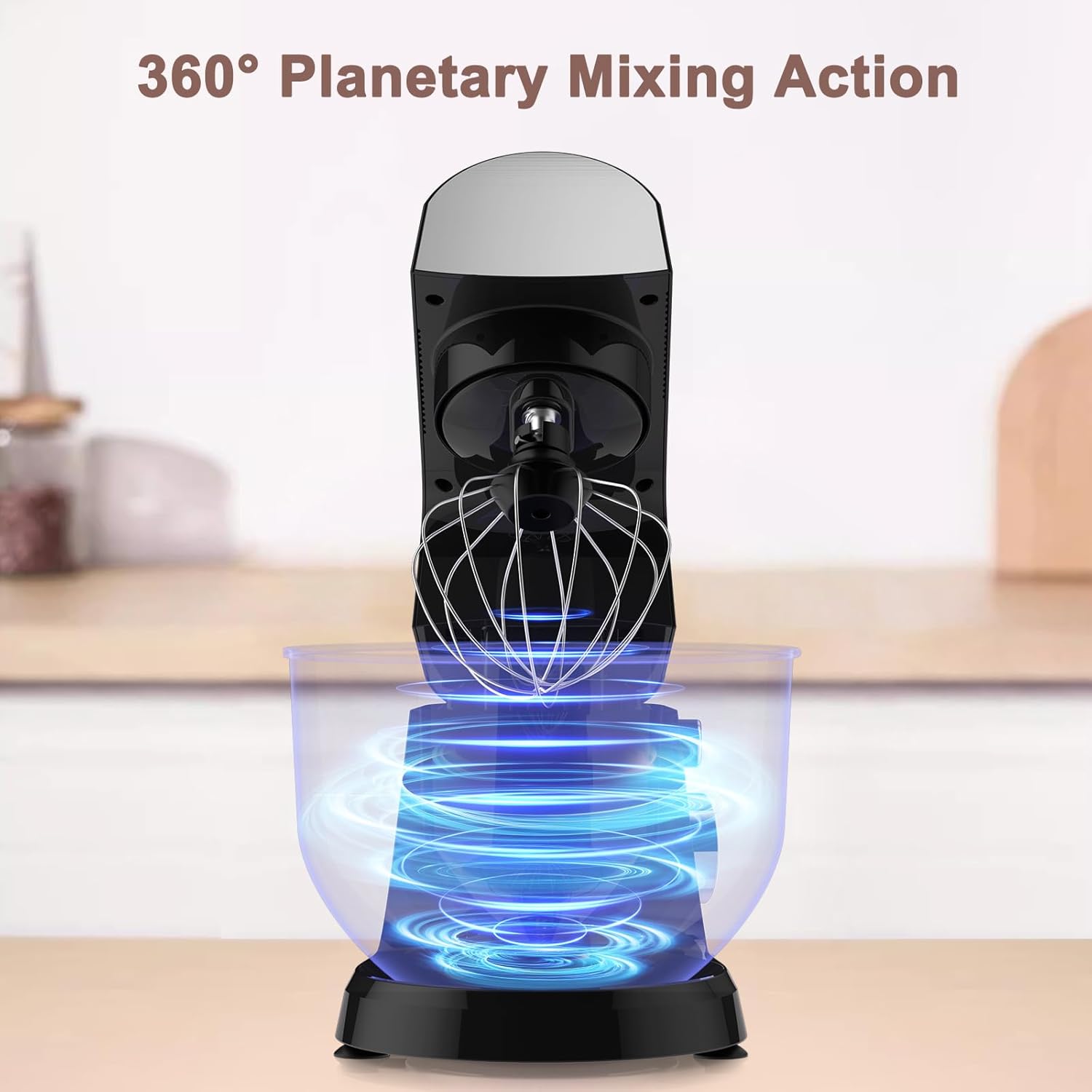 Stand Mixer, 5.5 Quart, 10 Speed Tilt-Head Food Mixer, Kitchen Electric Mixer with SS Bowl, Copper Motor, Beater, Dough Hook, SS Egg Whisk (300W Black)