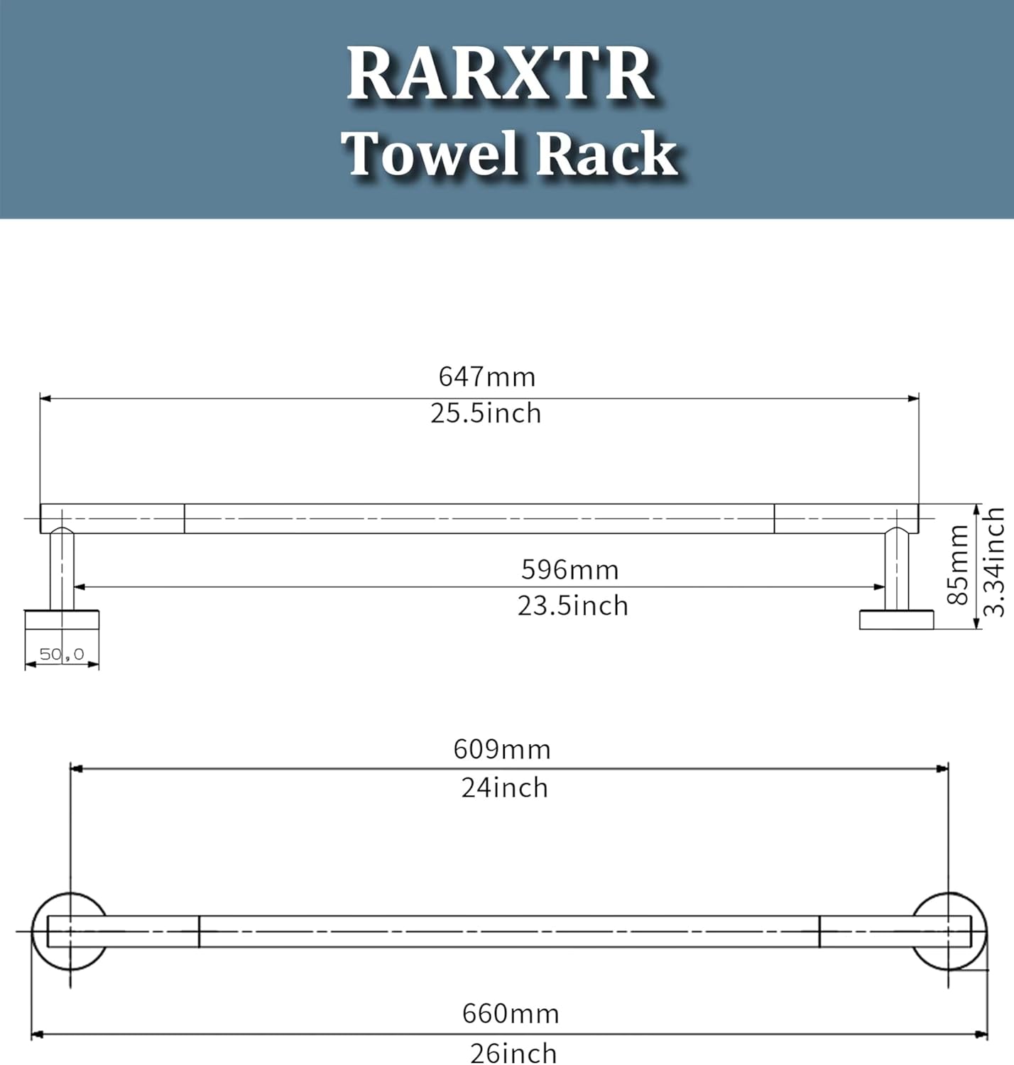 - Note: The 24" length is measured from center to center(drilled hole to hole). The distance from end to end is 26 inches.