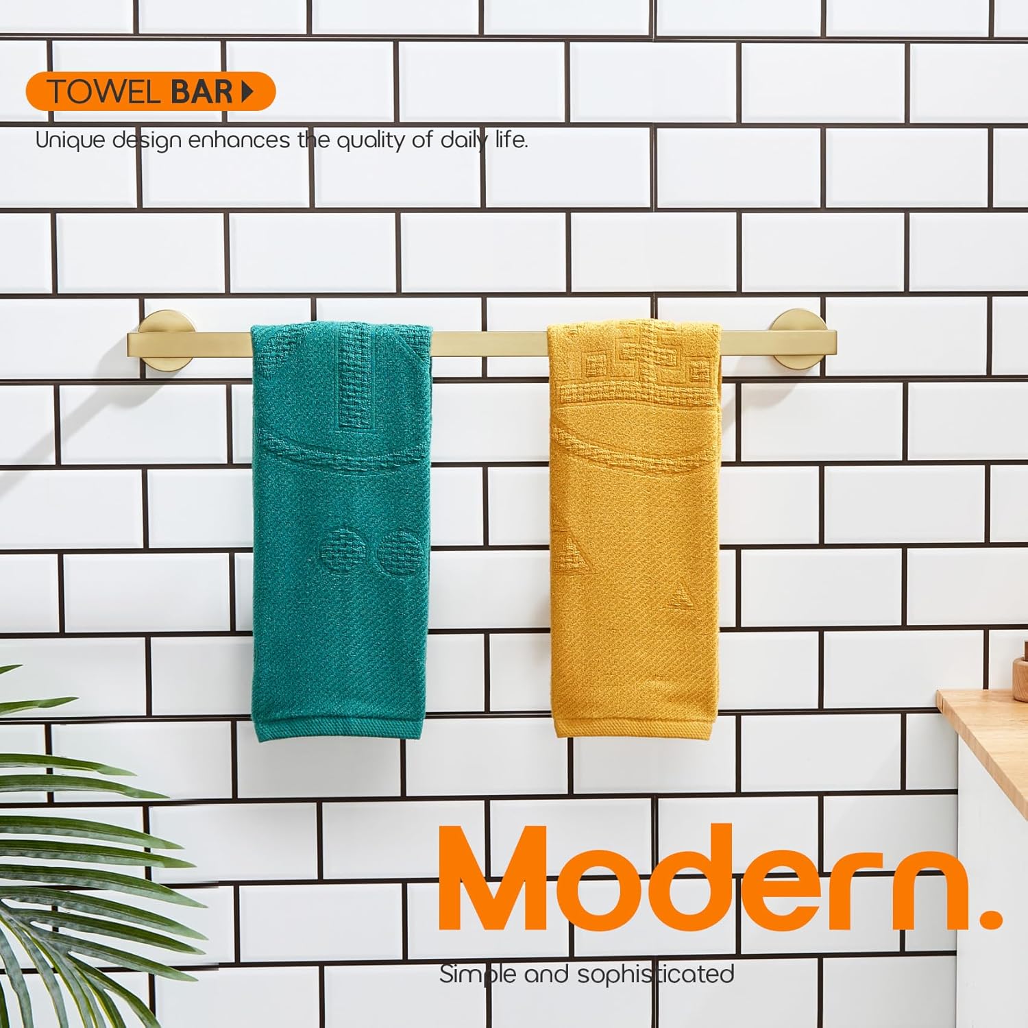 24 Inch Bathroom Towel Bar Bath Towel Rack Kitchen Towel Holder Towel Rails Wall Mounted SUS304 Stainless Steel Brushed Gold AN4001GD-L24