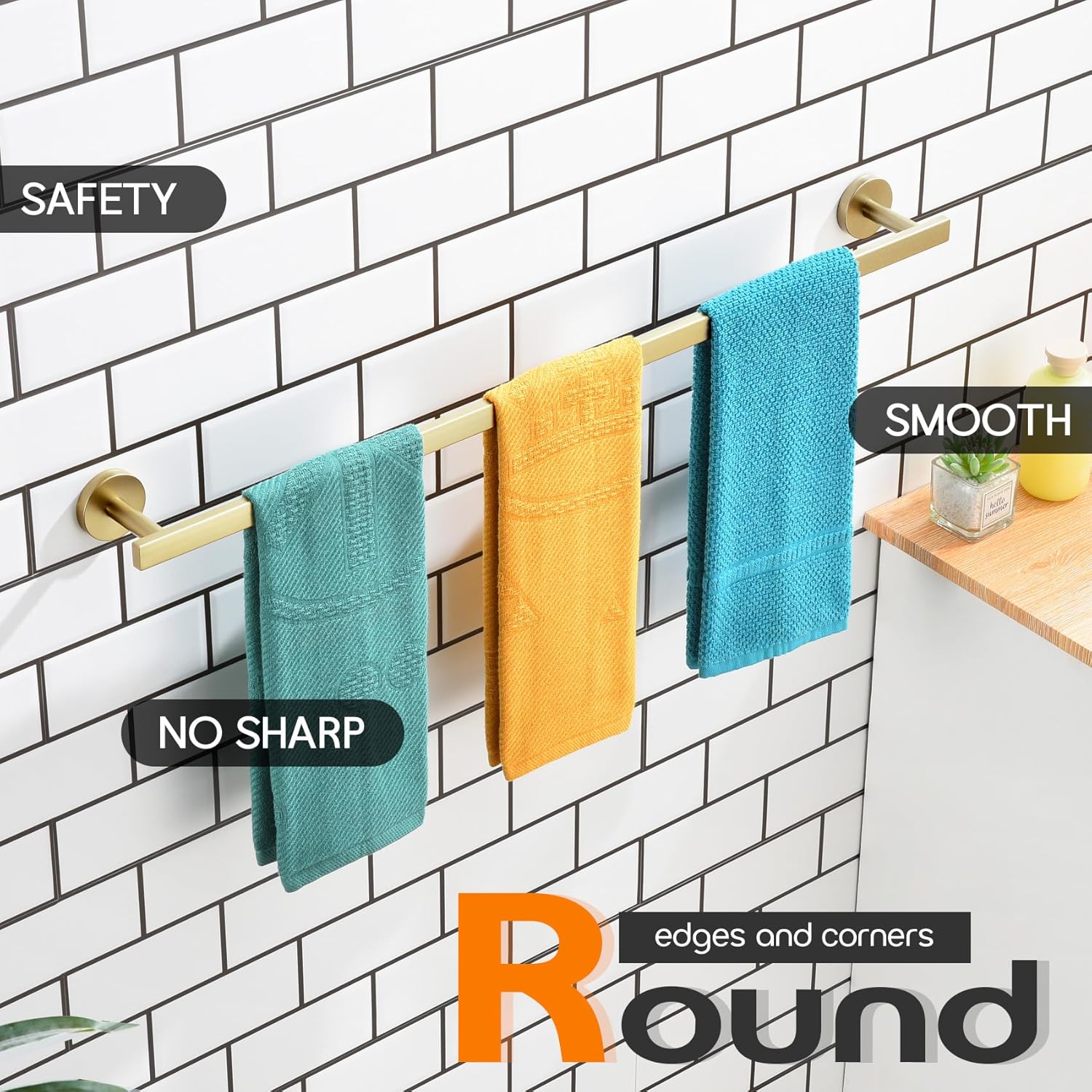 32 Inch Bathroom Towel Bar Bath Towel Rack Kitchen Towel Holder Long Towel Rails Wall Mounted SUS304 Stainless Steel Brushed Gold AN4001GD-L32
