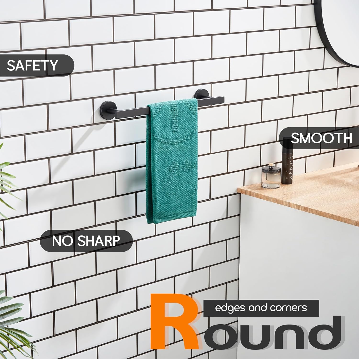 12 Inch Bathroom Towel Bar Bath Towel Rack Kitchen Towel Holder Towel Ring Wall Mounted SUS304 Stainless Steel Matte Black AN4001MB-L12