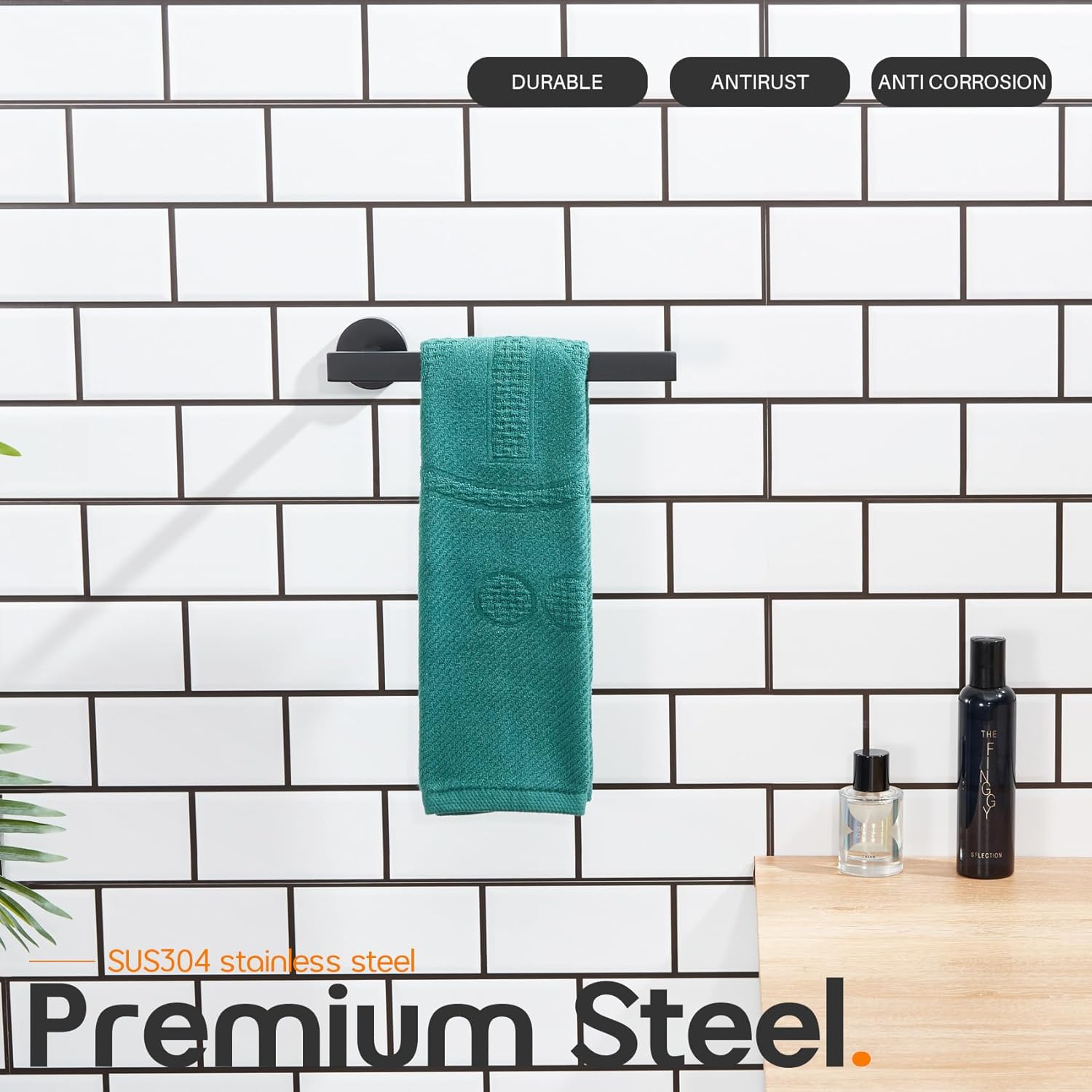 Hand Towel Rings Bathroom Towel Holder Modern Small Bath Towel Bars Stainless Steel Wall Mounted Matte Black AN3001MB