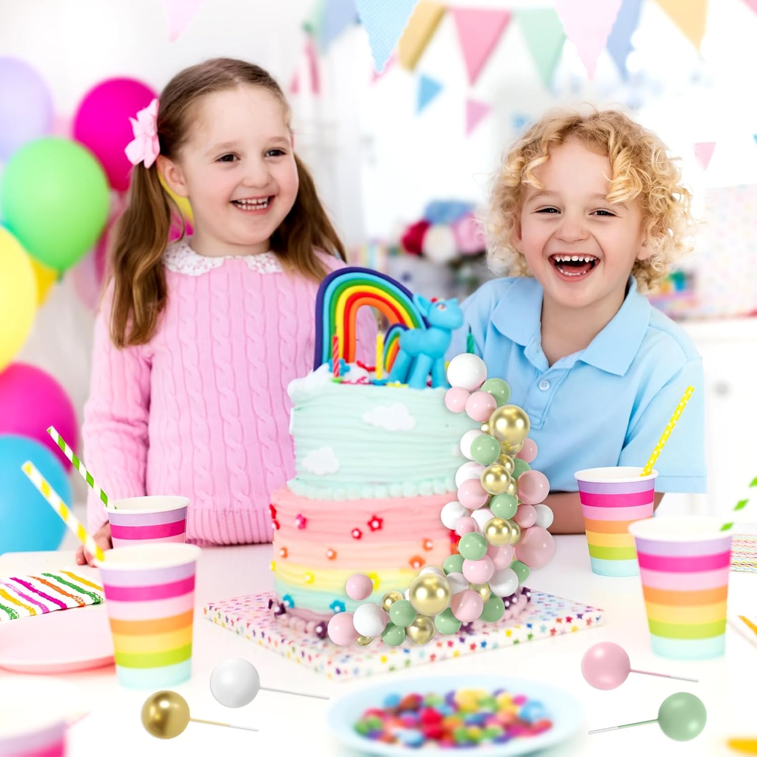 48 Pcs Balls Cake Topper Decorations Balloon Cupcake Toppers Foam Cake Topper Balls Cake Balls Decorations for Birthday Party Wedding Cake Decorating(Green,Pink,White,Gold)