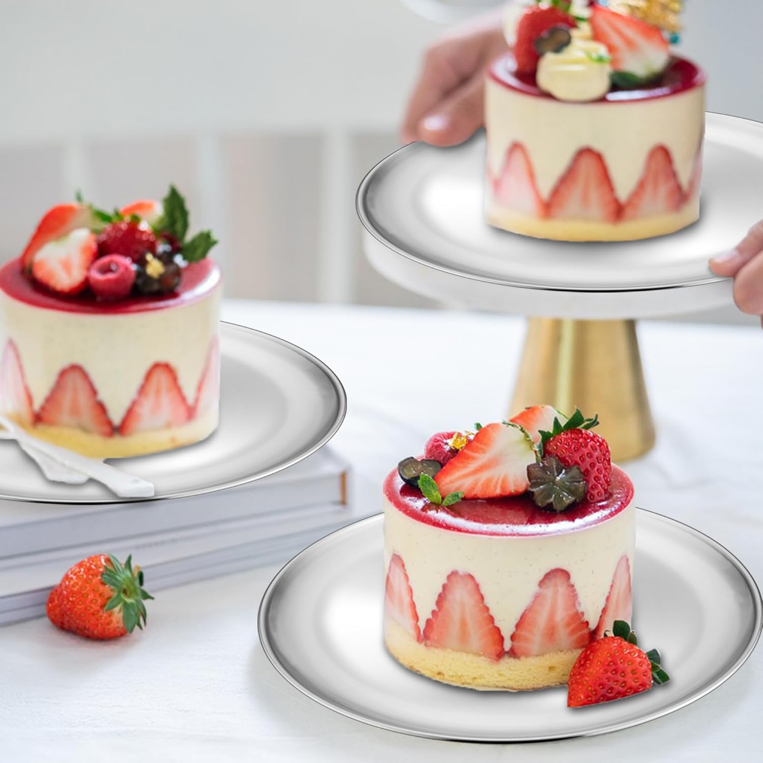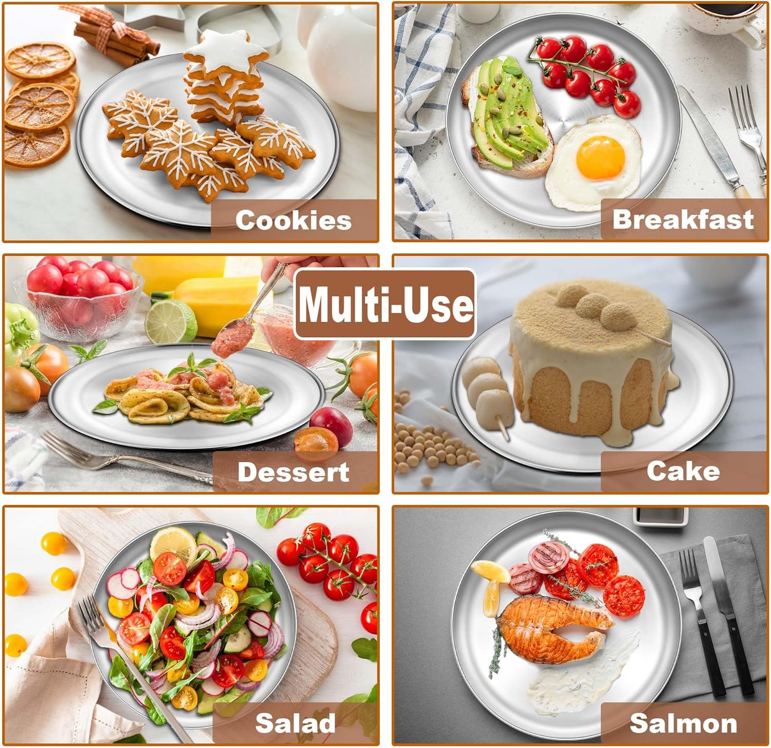 - 6 Pcs & Versatile: Sized 9’’ Dia x 0.7’’ H, Set of 6 are suitable to make different flavors of pizza at once, Compact size for baking small pizza cookies and pies, As serving pan for fruits, snacks, dessert, Also great as metal dinner plates for kitchens, restaurants, picnics, outdoor activities, Meeting your needs for various occasions