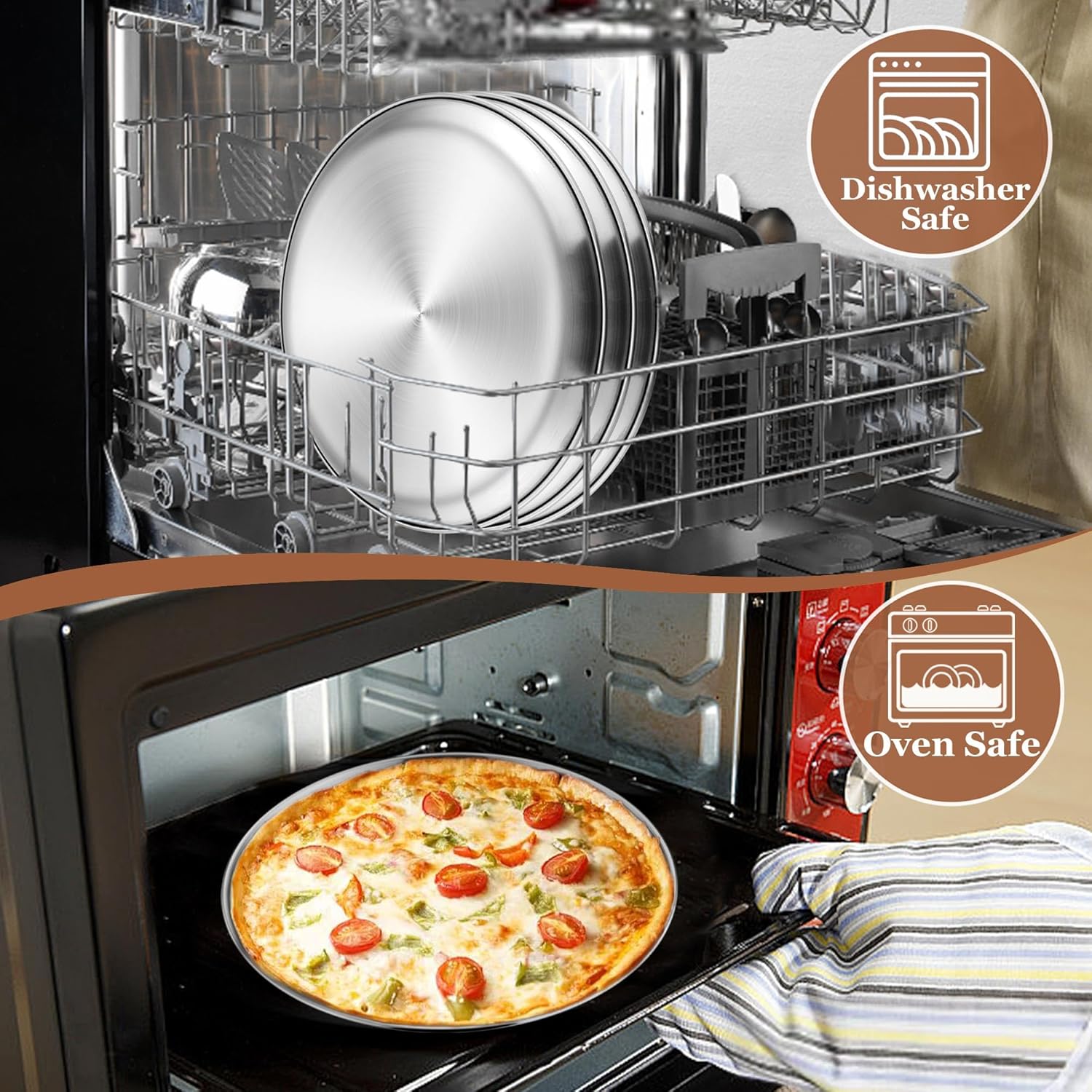 - Oven & Dishwasher Safe: The pizza trays are available for toaster oven and dishwasher, Brushed smooth surface for less sticking and easily releasing, Dishwasher safe to save your hassle, Effortlessly clean up even in hand-wash, Allowing you to enjoy your easy baking time