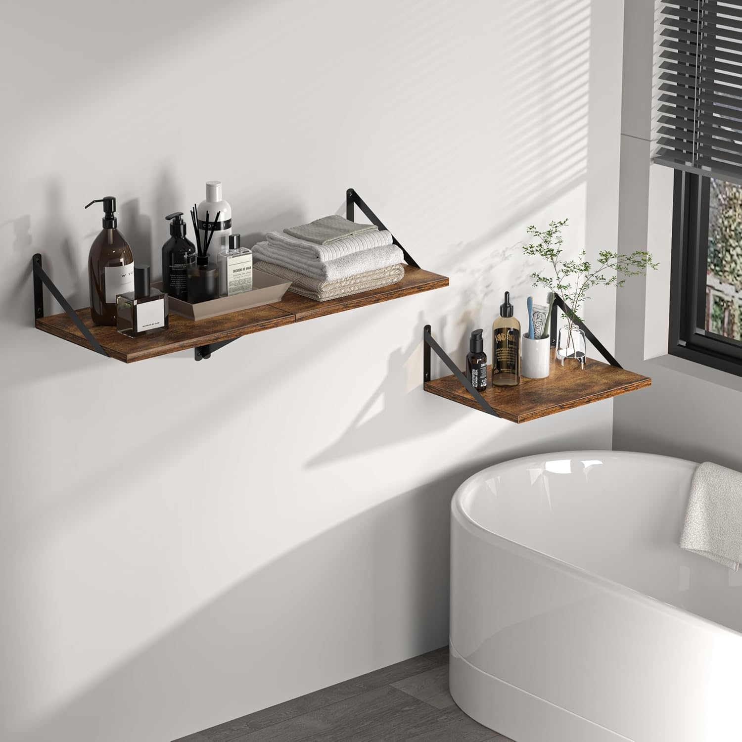 - [Discover More Organization Space] - Don't worry about cluttered desktops and floors! Why not try using the walls? The wonderful combination of smooth-surfaced metal brackets and engineered wood board texture decorates your home with a natural and rustic beauty! Great for organizing books, collectibles, plants, and trophies on the wall without occupying floor space.