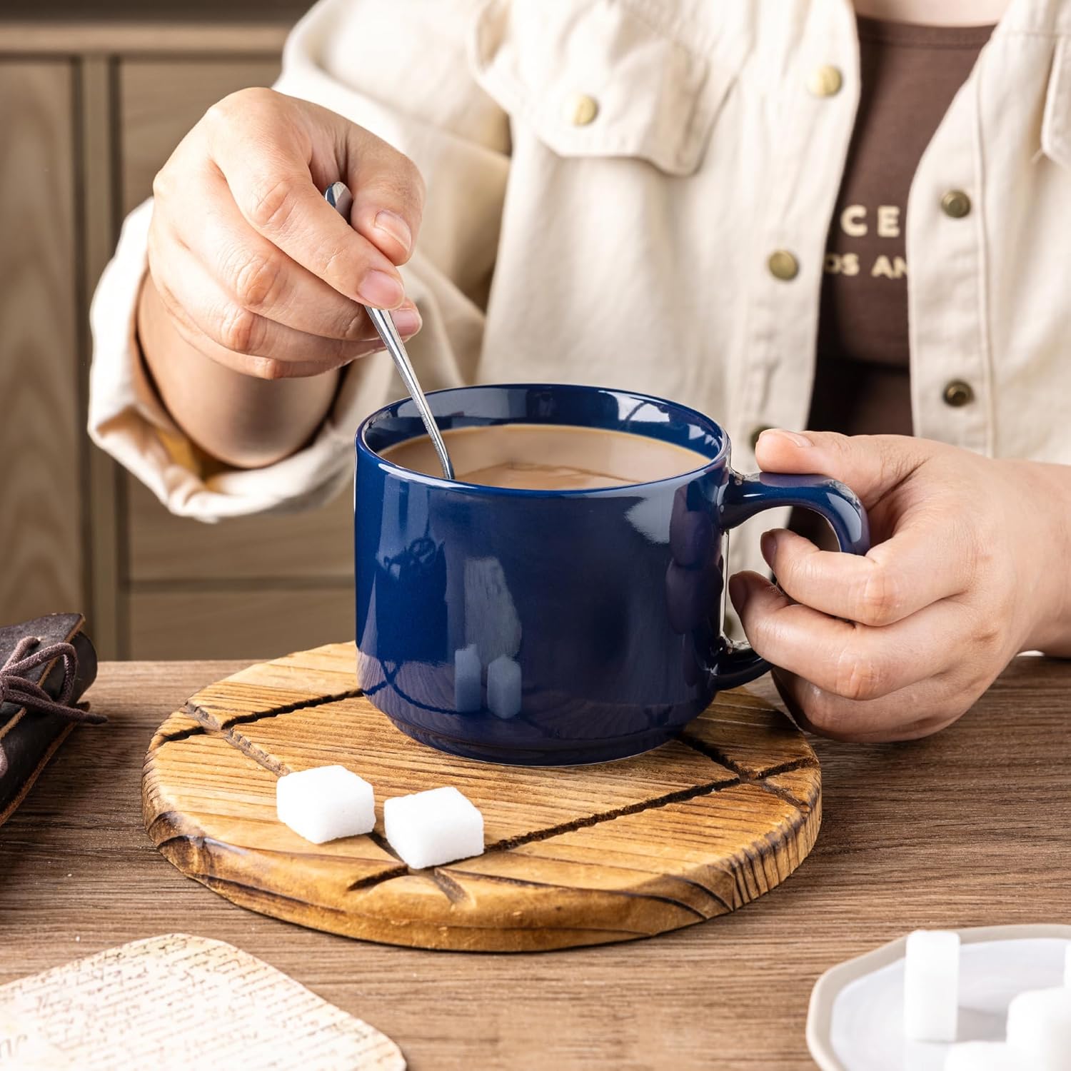 GBHOME 14 OZ Coffee Mugs Set of 6, Stackable Ceramic Mugs for Men, Women, Modern Coffee Cups for Latte,Cappuccino,Hot Cocoa. Dishwasher & Microwave Safe, Navy Blue