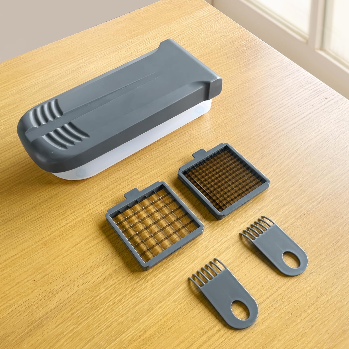 LHS Multifunctional Food Chopper - Onion, Vegetable Slicer Dicer Cutter, Potato Cutter - Veggie Chopper with Container (4 in 1, Grey)