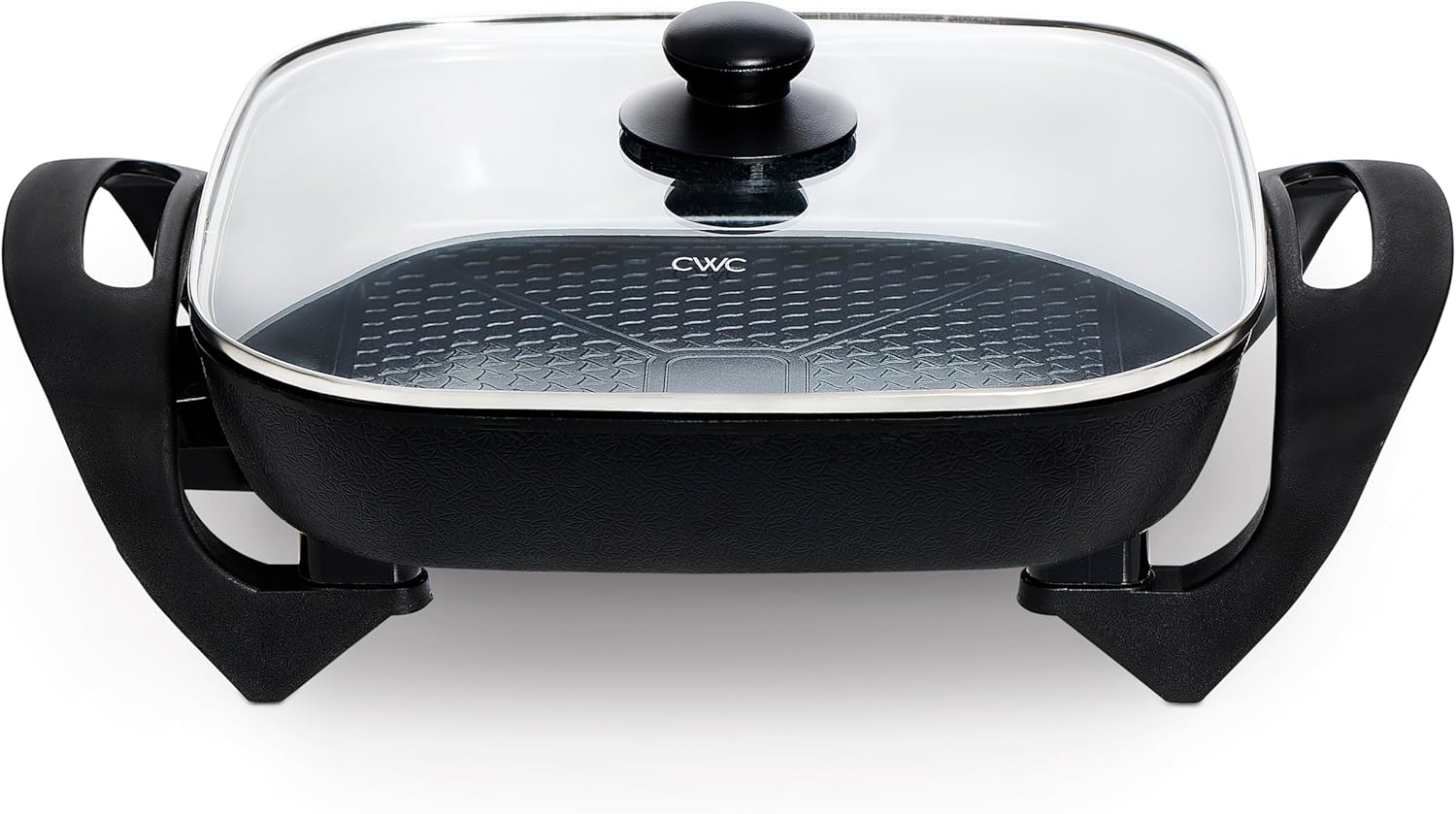 - Spacious and Durable: Features a large 12" x 12" x 2.4" die-cast aluminum pan with a ceramic coating, offering durability, even heat distribution, and ample space for large meals.