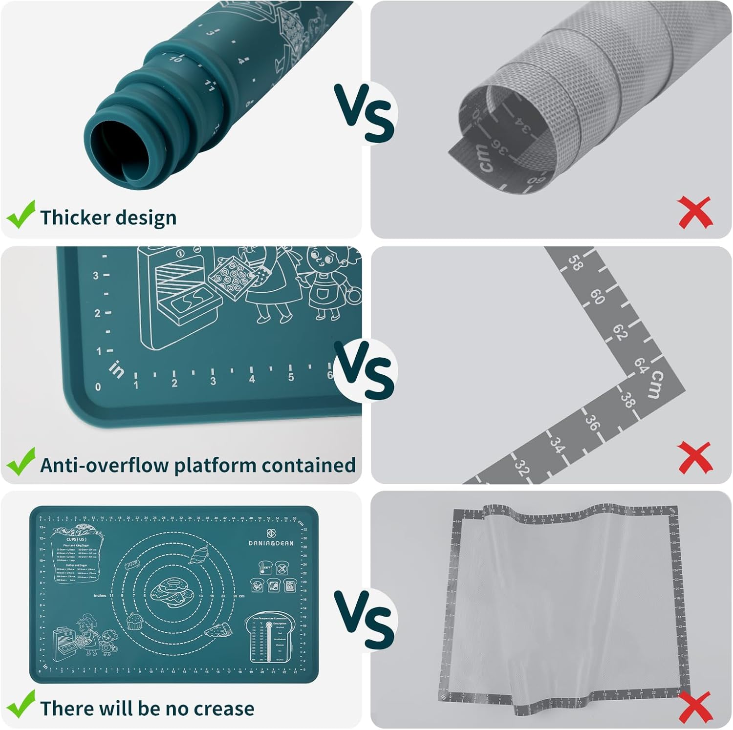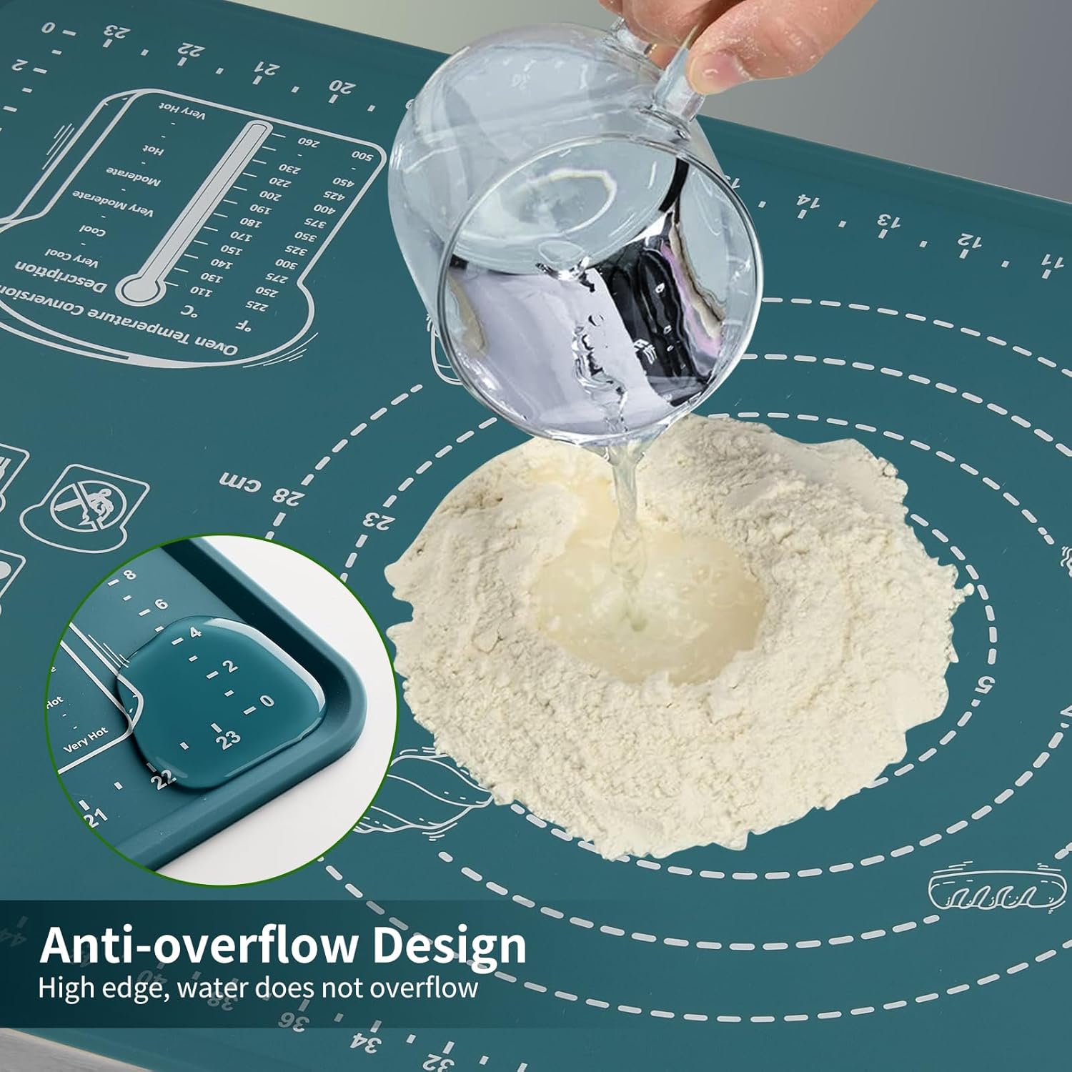 - 【Thicken & Edge Heightening Design】: Our silicone rolling mat boasts a thickness of 1.1mm and edge height of 4.5mm, surpassing standard baking mats. Featuring a distinctive raised edge design, it effectively contains spills, ensuring a clean work surface. This pastry mat remains securely in place without wrinkling during use. Expect unparalleled durability that defies expectations—this mat won't degrade over time, guaranteeing long-lasting performance.