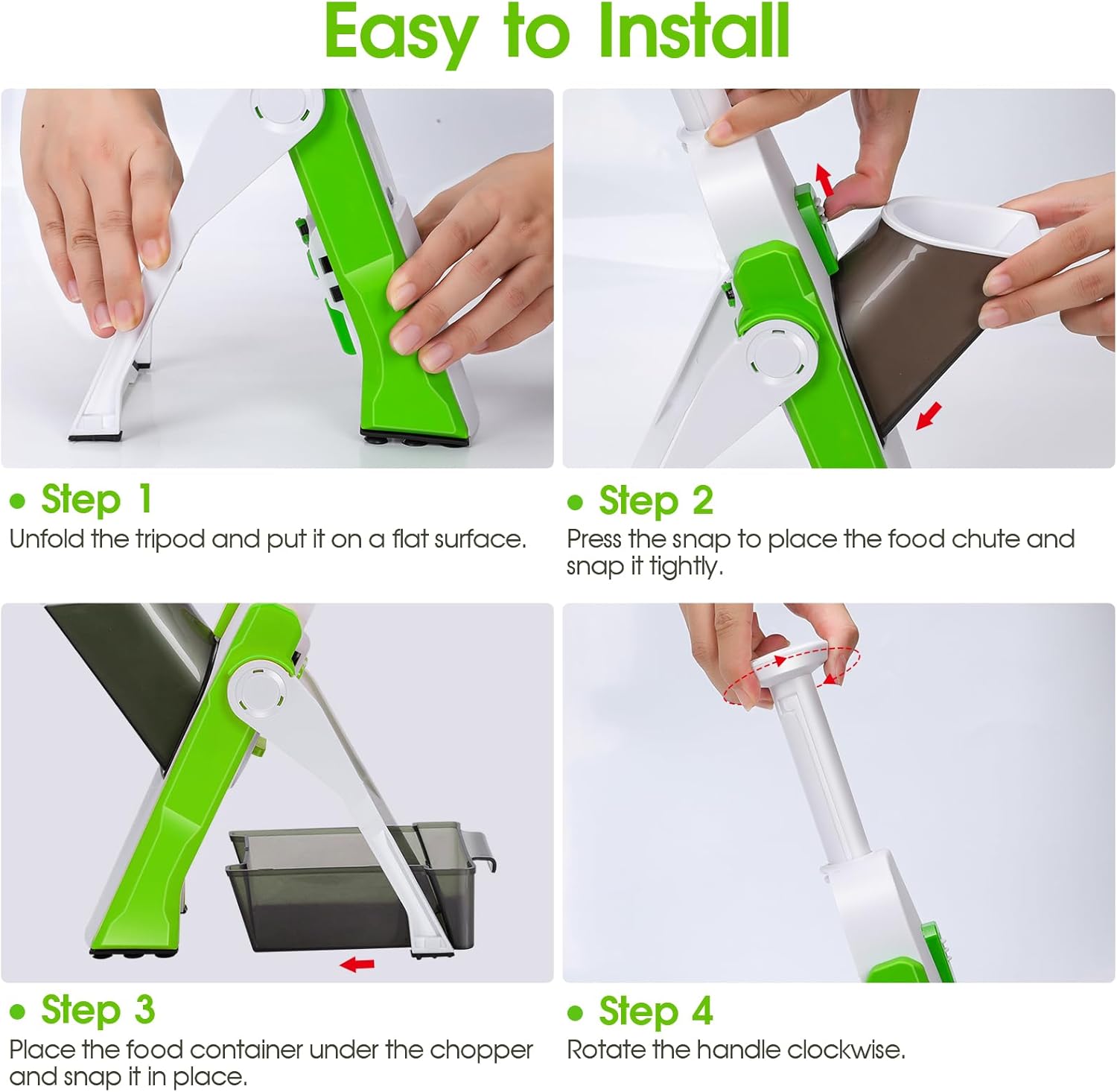 - MORE STABLE: The triangular stand design of the vegetable slicer can better support the kitchen slicer and stand stably on the table. There are 8 suction cups on the feet of the product to better hold the slicer in place while slicing.