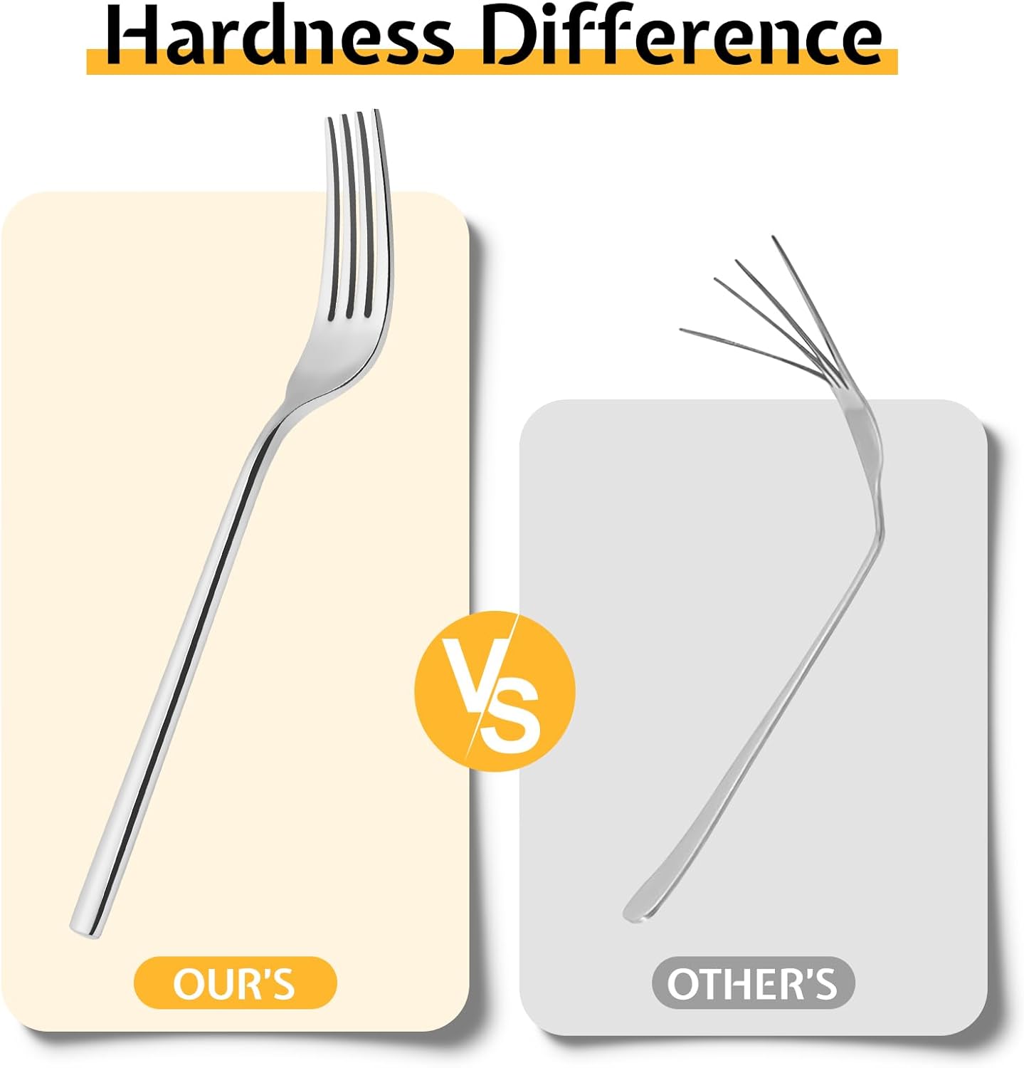 - DESIGN AND APPEARANCE: Mirror finish, natural and elegant design.Smooth and silk surface without grain, easy to clean and care in daily use. Crafted forged process,strong and durable,so that the flatware set has a thicker texture