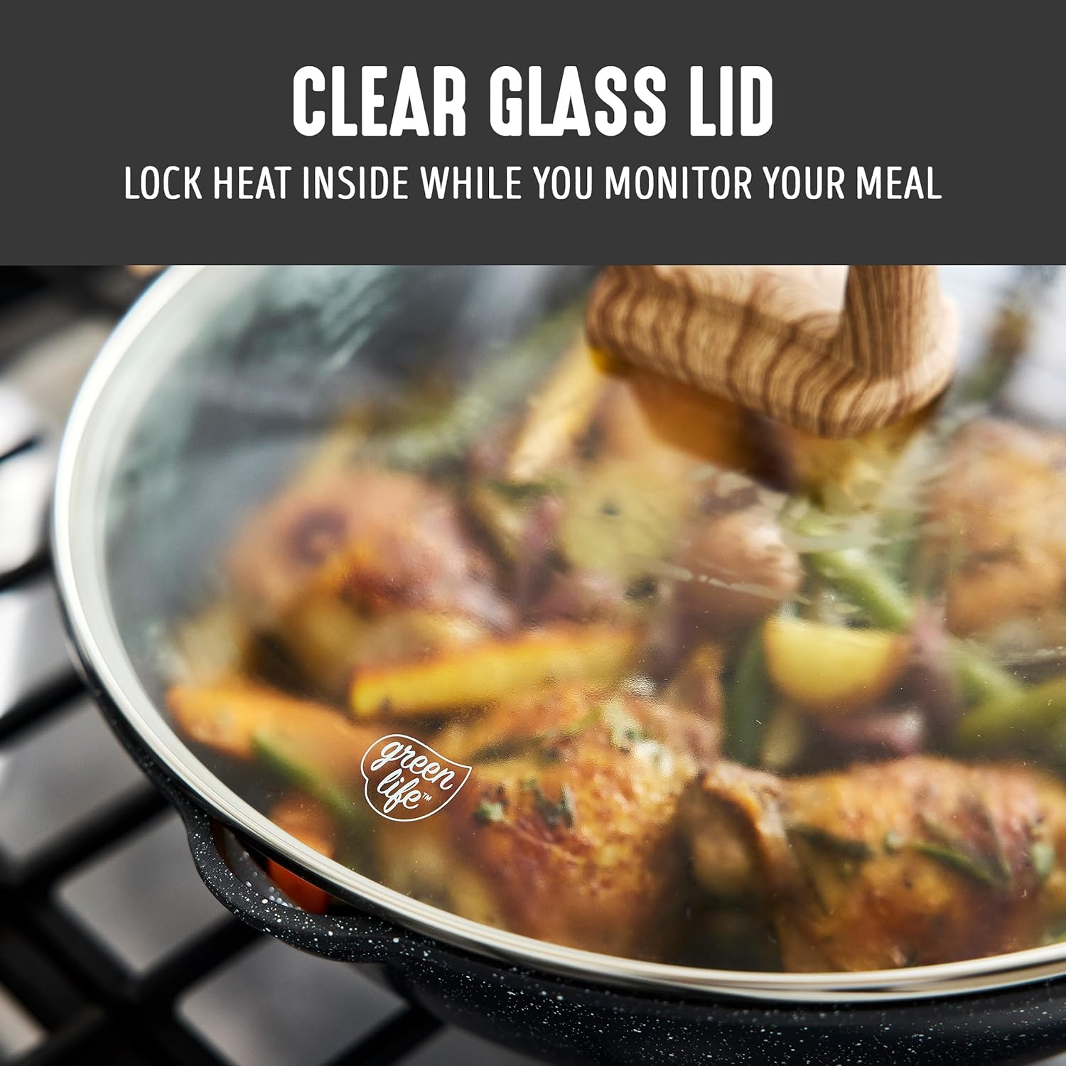 GreenLife Nonstick 12” (5QT) All in One Deep Skillet Wok with Lid, PFAS-Free Non-Toxic Ceramic Multi-Purpose Pan, Induction, All Stovetop, Egg, Stir Fry, Saute, Stay Cool Handle, Granite Black