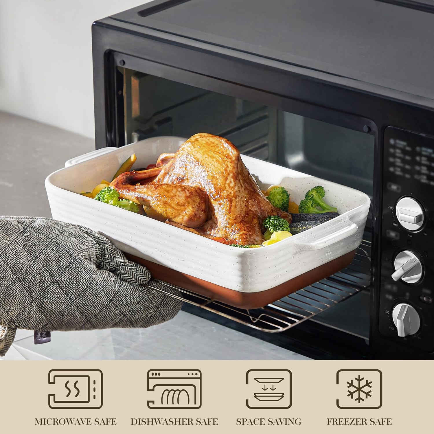 - 【Perfect Gift】With its elegant design and practical functionality, this baking dish makes an excellent gift for housewarmings, weddings, or anyone who loves to cook.