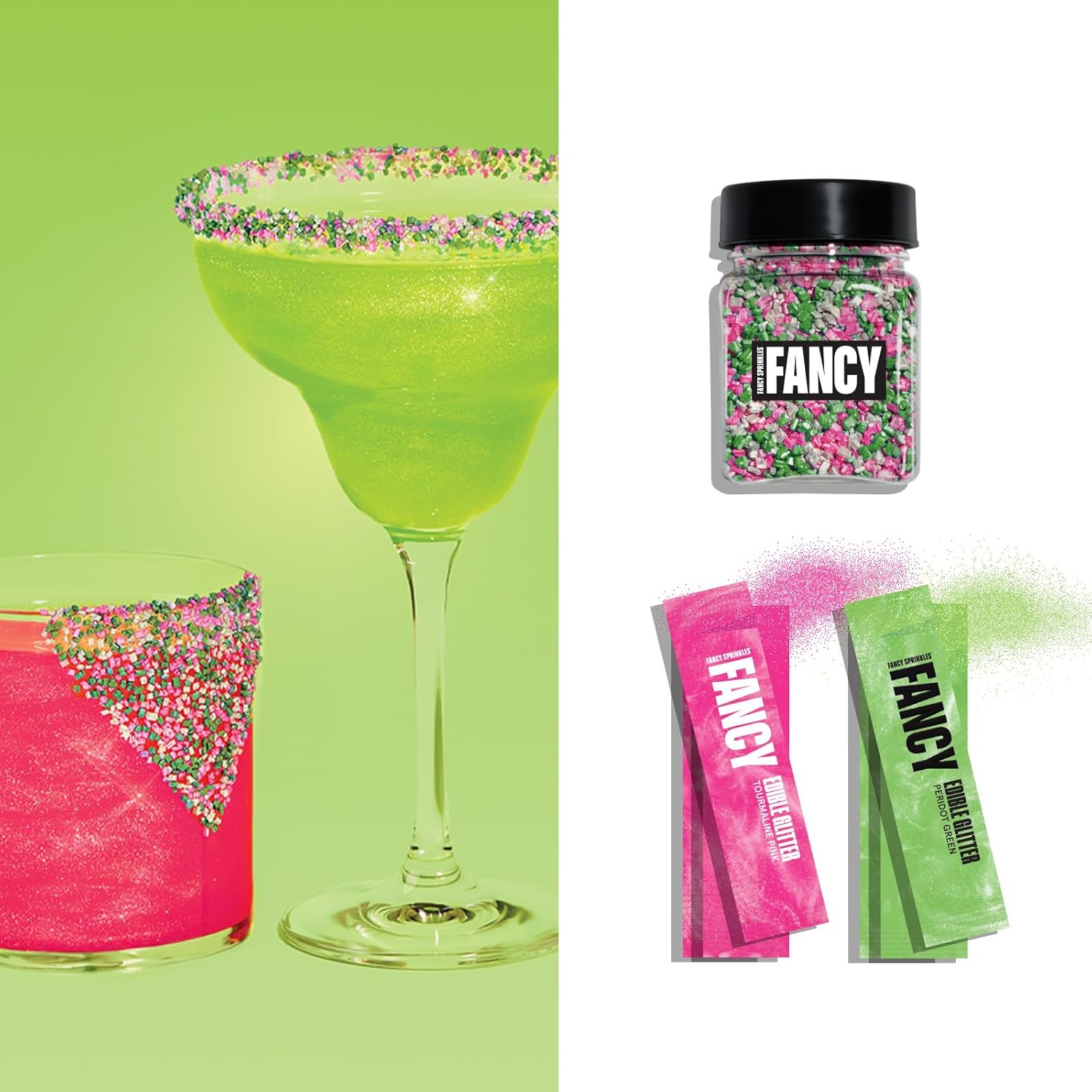 - LEVEL UP THOSE MARGS: Easily rim cocktails and add colorful, glittery swirls to drinks