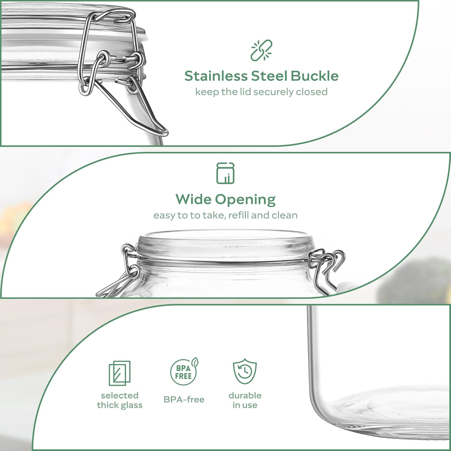 - Wide Applications: Our airtight storage jars are very versatile and can be used not only to store a wide variety of foods such as pasta, coffee beans, cookies, candy and spices, but also to pickle your own fruits and vegetables