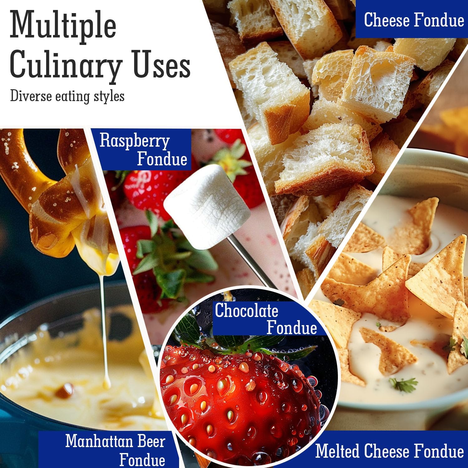 - IDEAL FONDUE with FAMILY - Perfect for gatherings, date nights, or family celebrations, this fondue pot combines style and functionality to create a delightful culinary adventure. Enjoy perfectly melted cheese, chocolate, broth, or oil fondue with your favorite fixings. Perfect for sharing, this set comes with six color-coded fondue forks so you know which is yours.