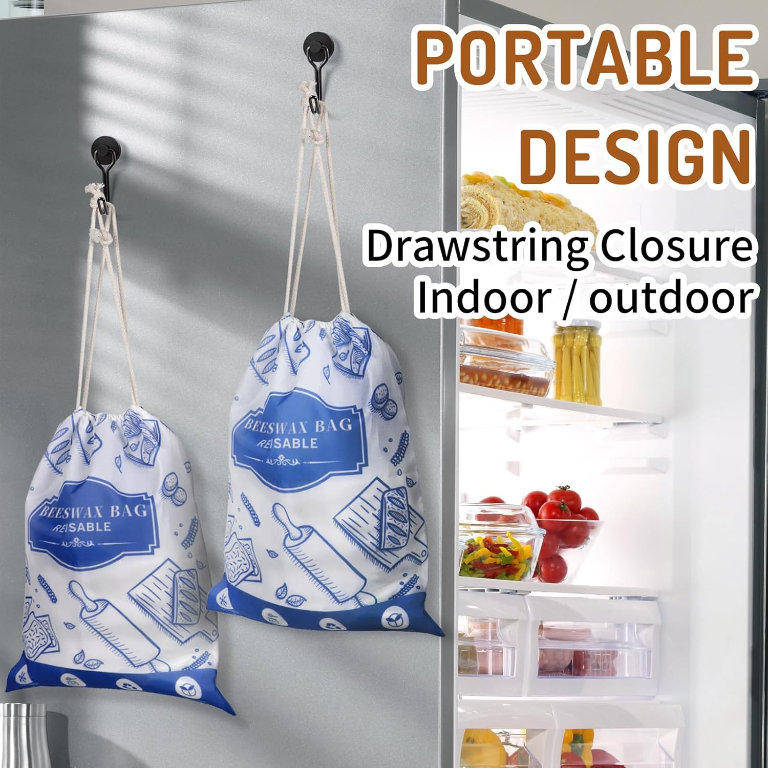 2-Pack Beeswax Bread Bags for Homemade Bread,Reusable Sourdough Storage Bags with Premium Beeswax Coating for Loafs Baguette Fresh Keeping,Great Baking Essentials and Gifts for Families & Friends.