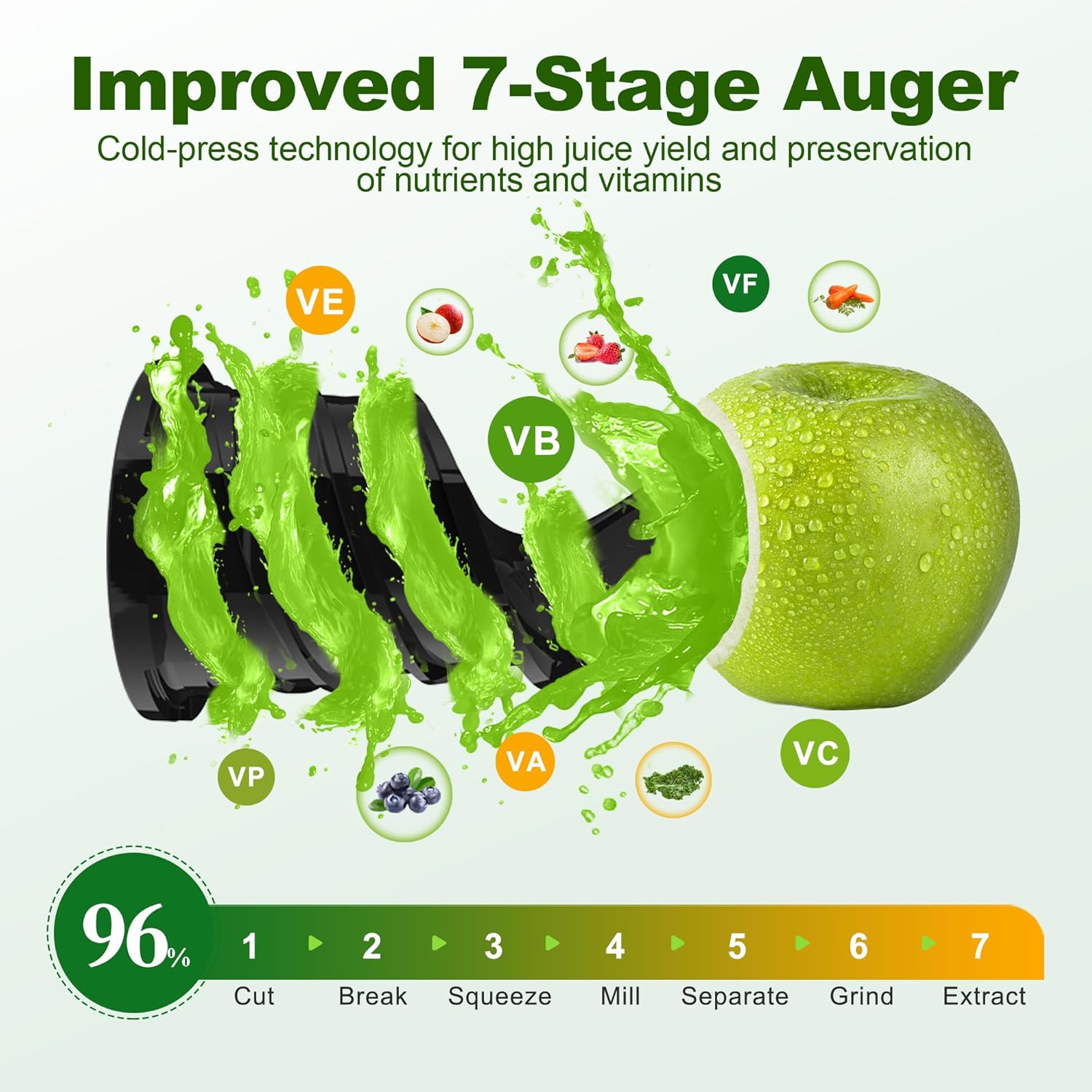 - Professional Cold Press Technology: Slow masticating juicer (80 RPM) preserves enzymes & nutrients 3X better than centrifugal juicers. Ideal for wheatgrass, celery, kale and hard veggies like carrots & ginger.