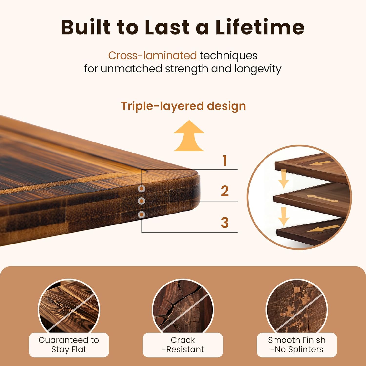 Bamboo Cutting Boards, (Set of 3) with Juice Groove, Bamboo Wood Cutting Board Set for meat, fruit and cheese