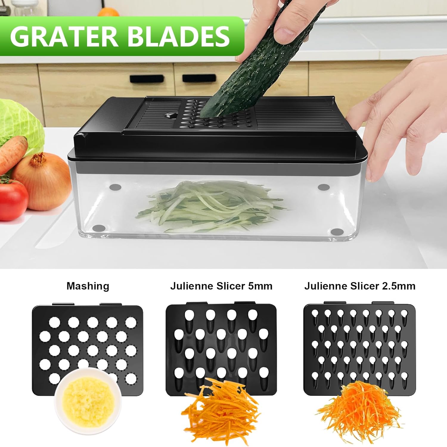 - INTERCHANGEABLE BLADES: Multifunctional Vegetable Chopper with Container contains different sizes of blades. The versatile blades provide multiple functions and are the perfect tool to make home cooking easier and faster.